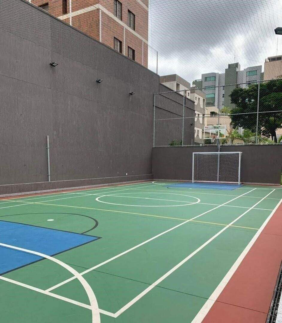Tem 197,15 m2 + cozinha gourmet com varanda, toda equipada, com 84,41 m2, área total de 281,56 m2com aprovação na PBH.Sala ampla com lavabo, varanda incorporada com cortina de vidro, piso porcelanato cimentício PortoBelo, 04 quartos sendo duas suítes com armários, janelas dos quartos com venezianas embutidas,rouparia, um banho social que serve a dois quartos, piso em laminado vinílico, partes frias em granito,banheiros com box e espelhos, cozinha gourmet com automação, sistema acústico, espaço para adega,ar condicionado. São 04 vagas na garagem sendo 02 em linha + duas vagas em linha no G1 e box.