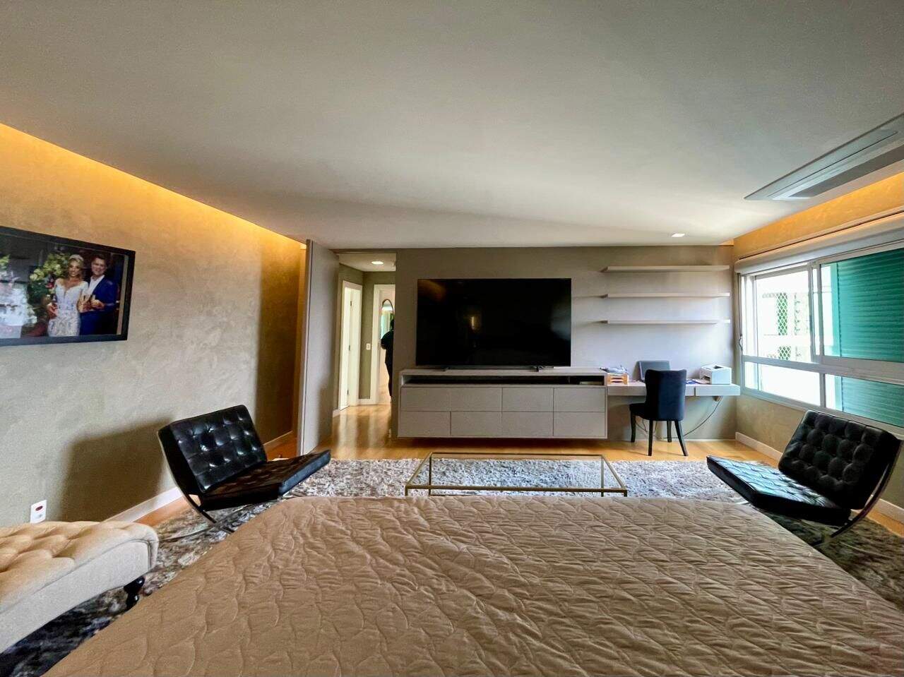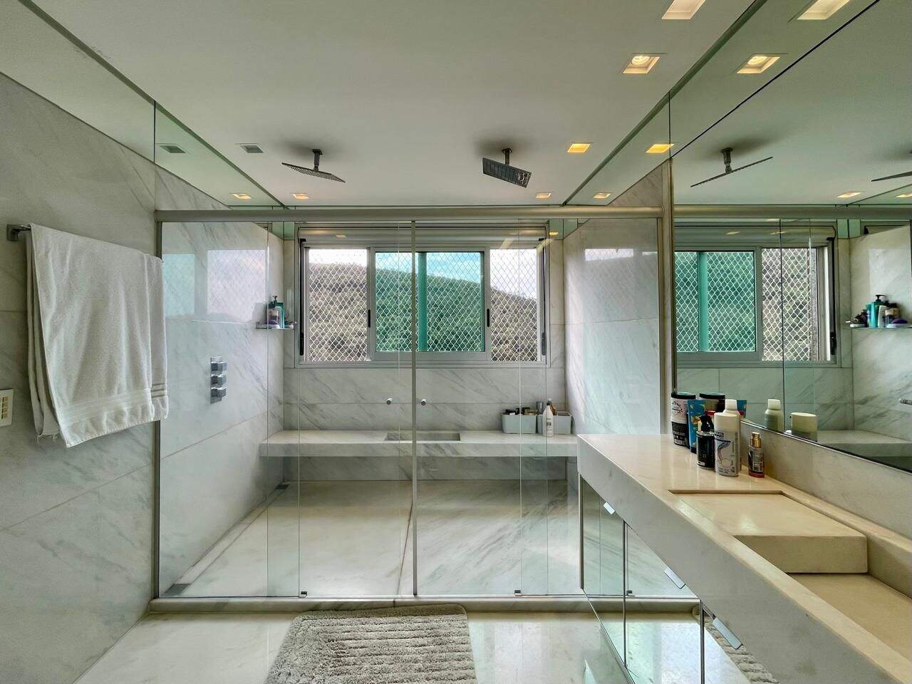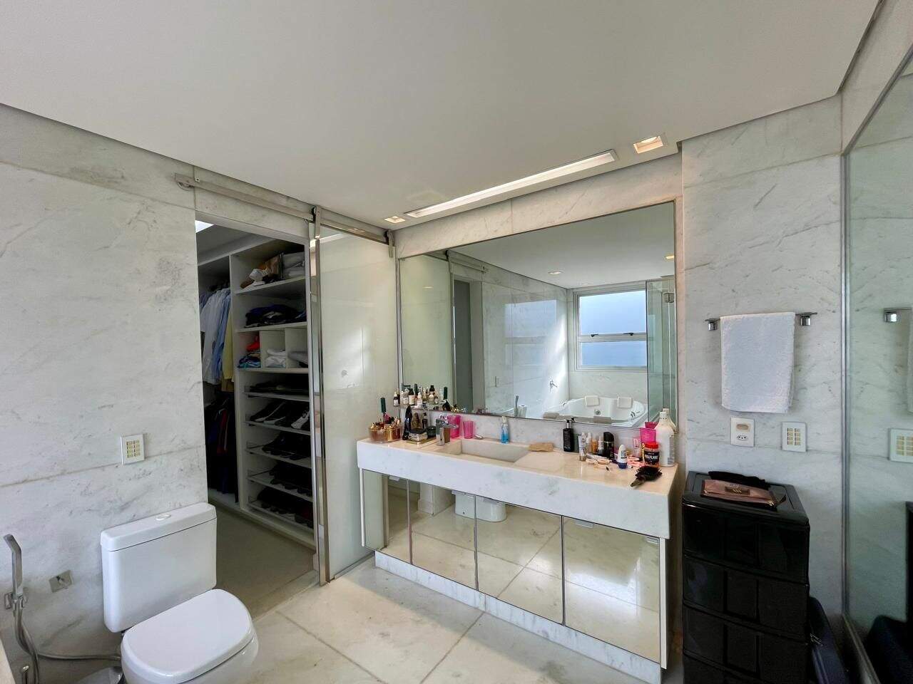 Amplo apartamento de 512 m², 5 quartos sendo 4 suítes, Salão para 4 ambientes com varanda Gourmet equipada, Lavabo, Linda Vista definitiva para as montanhas e 10 Vagas de garagem!Piso em mármore banco, Painéis de madeira, Lareira e ar condicionado central, lareira e escritório.Rico em marcenaria, todas as suítes possuem closet, a Master com 2 Closets e 2 Banhos. Ar condicionado em todos os quartos, cozinha em ilha em granito, despensa, 2 box de despejo e 3 elevadores e hall privativo.Lazer Completo:3 piscinas aquecidas uma com raia fechada, sauna seca e a vapor, quadra de tênis, quadra poliesportiva, espaço gourmet, sala de cinema, sala de jogos, espaço mulher, sala de massagem, Pilates, garage band, espaço kids, academia , 2 salões de festas, portaria 24h blindada, circuito interno com câmeras de monitoramento, quadra de squash, parquinho infantil, churrasqueira e Bosque com Chalé na mata.Estrutura do Condomínio:Boxes para lavagem de carros na garagem, Estacionamentos para visitantes, Guarita com vidros blindados, Cirucito fechado de TV com 24 câmeras, cerca elétrica e Torres revestidas com granito aerado.Obs: Sempre consulte os valores com nossos especialistas, os valores podem se alterar sem prévio aviso