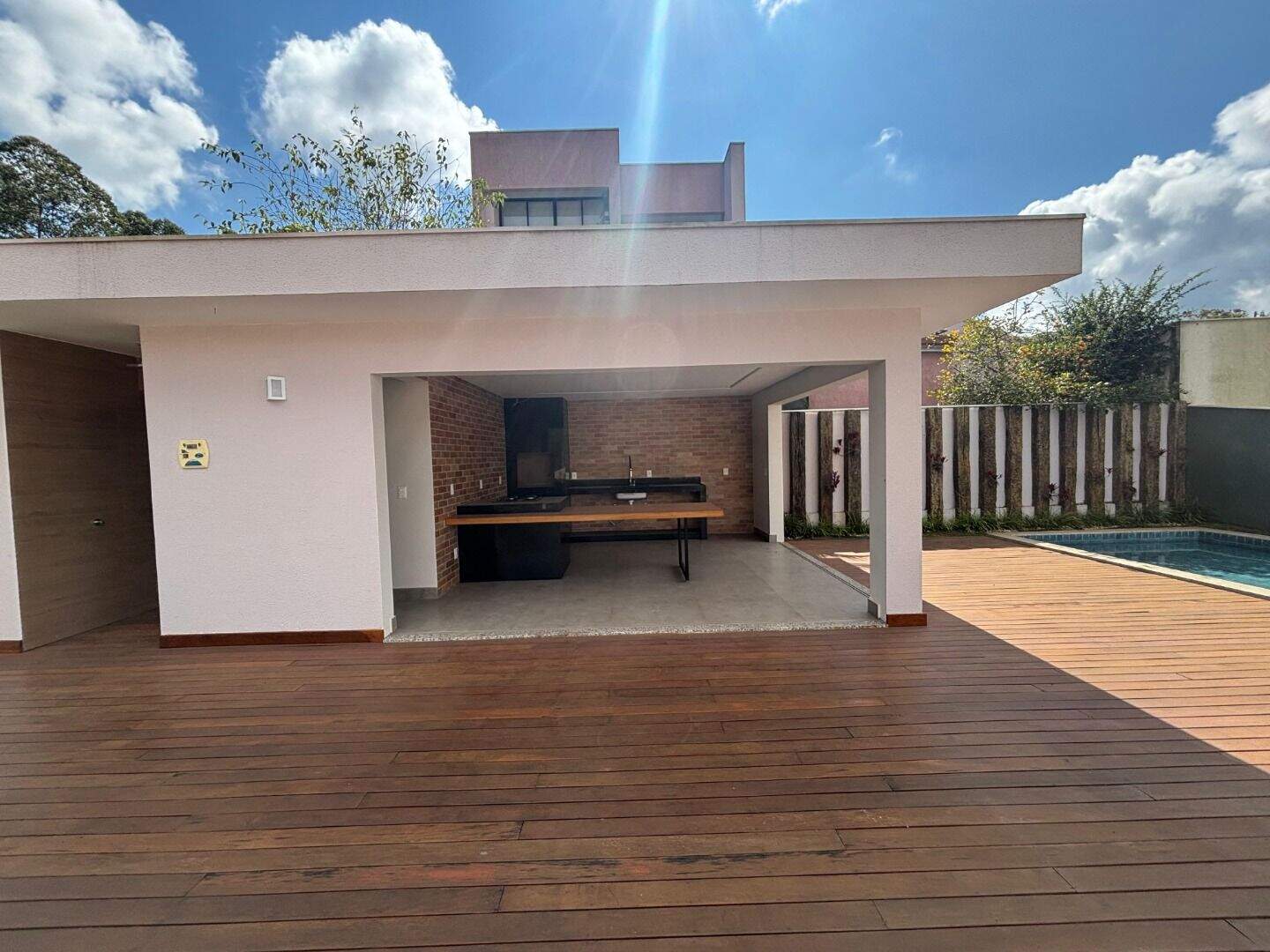 Casa totalmente reformada, em dois pavimentos sendo que entre a sala a a cozinha existem poucos degraus. Na entrada principal fica a sala, bastante espaçosa , poucos degraus acima a cozinha, dispensa, uma suíte e mais um quarto , além de um banheiro.No segundo andar, fica uma suíte com ante sala, banheiro e varanda privativa, fechada com blindex.Nos fundos do terreno, ampla área gourmet, com piscina, sauna, deck de madeira e churrasqueira. A garagem é para 2 carros coberta