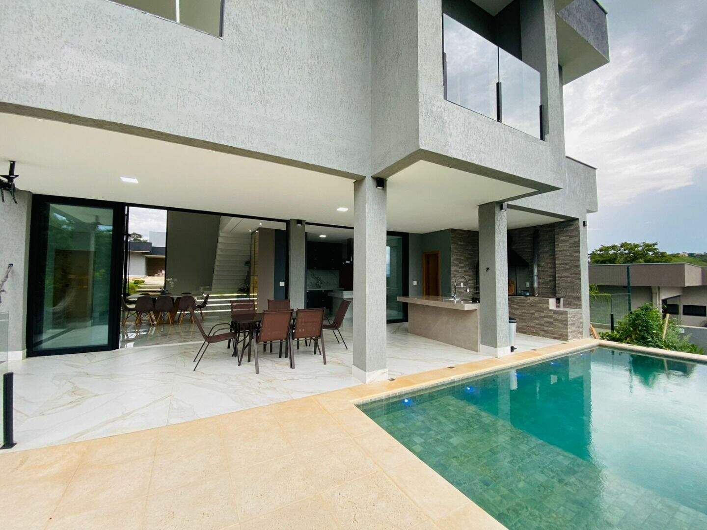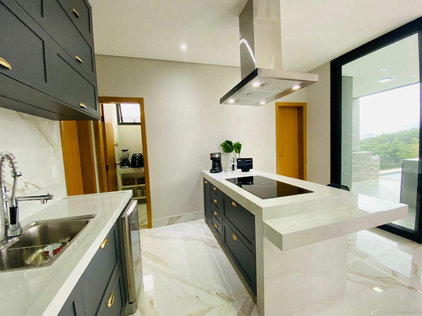 Casa tem 4 quartos Real Garden Lagoa Santa03 quartos no andar superior, sendo uma suíte master com closet e 02 quartos com semissuite.1 quarto no andar inferior com semissuite.Cozinha com armários planejados, cooktop de indução e coifa.Despensa com armarioLavanderia com armárioArea Gourmet com bancada em porcelanato e churrasqueira a carvão + fogão a lenhaPiscina em porcelanato (com aquecimento elétrico) com borda infinita, iluminação e prainha com hidro (vista para a mata).Lavabo para apoio na área gourmet.Garagem para 4 carros (2 cobertos e 2 descobertos)Fotovoltaica para geração de 800kwh/mêsAquecimento com boiler de 600L