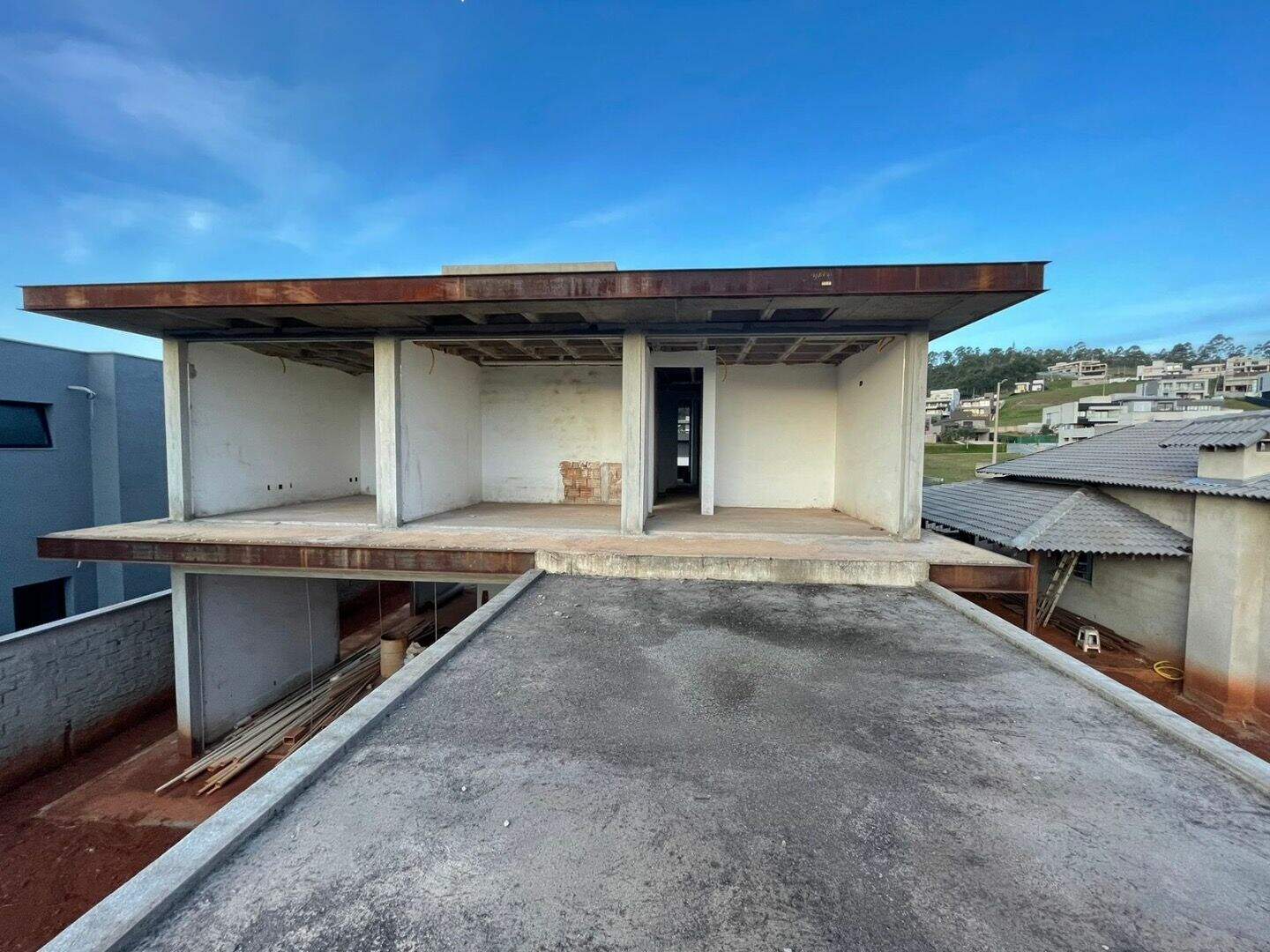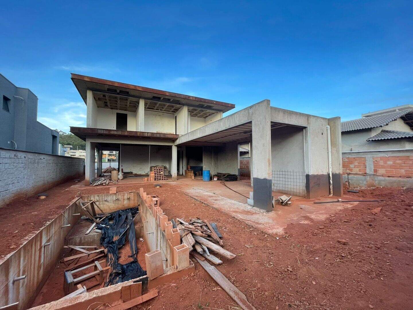 Casa em construção, funcional e prática para manutenção no dia a dia sem perder o aconchego. A área social com sua integração entre os espaços no primeiro pavimento permite pequenos encontros com amigos e familiares.Seu projeto arquitetônico apresenta um estilo moderno e diferenciado sendo de autoria do renomado e premiado arquiteto Lucas Padovani (Padovani Arquitetos). O projeto paisagístico complementa o imóvel trazendo bastante cor e delicadeza.No pavimento superior, há duas suítes, ambas com closet, um quarto para visitas, um banheiro social e um escritório. O banheiro do casal possui claraboia e um espaço para jardim, estando a rouparia no corredor.No pavimento inferior, há uma grande sala com um lavabo, uma área gourmet com banheiro, cozinha, despensa, área de serviço e um ateliê/oficina na garagem.A casa apresenta bastante iluminação natural e ventilação em toda a sua extensão.Nos quartos, não há janelas e sim portas (esquadrias) cuja claridade será interceptada por brises de alumínio de baixa manutenção.O projeto considerou portas de madeira de 3m de altura para acompanhar a arquitetura moderna da casa.Na área de lazer há piscina conjugada com um ofurô, integrada ao espaço gourmet.