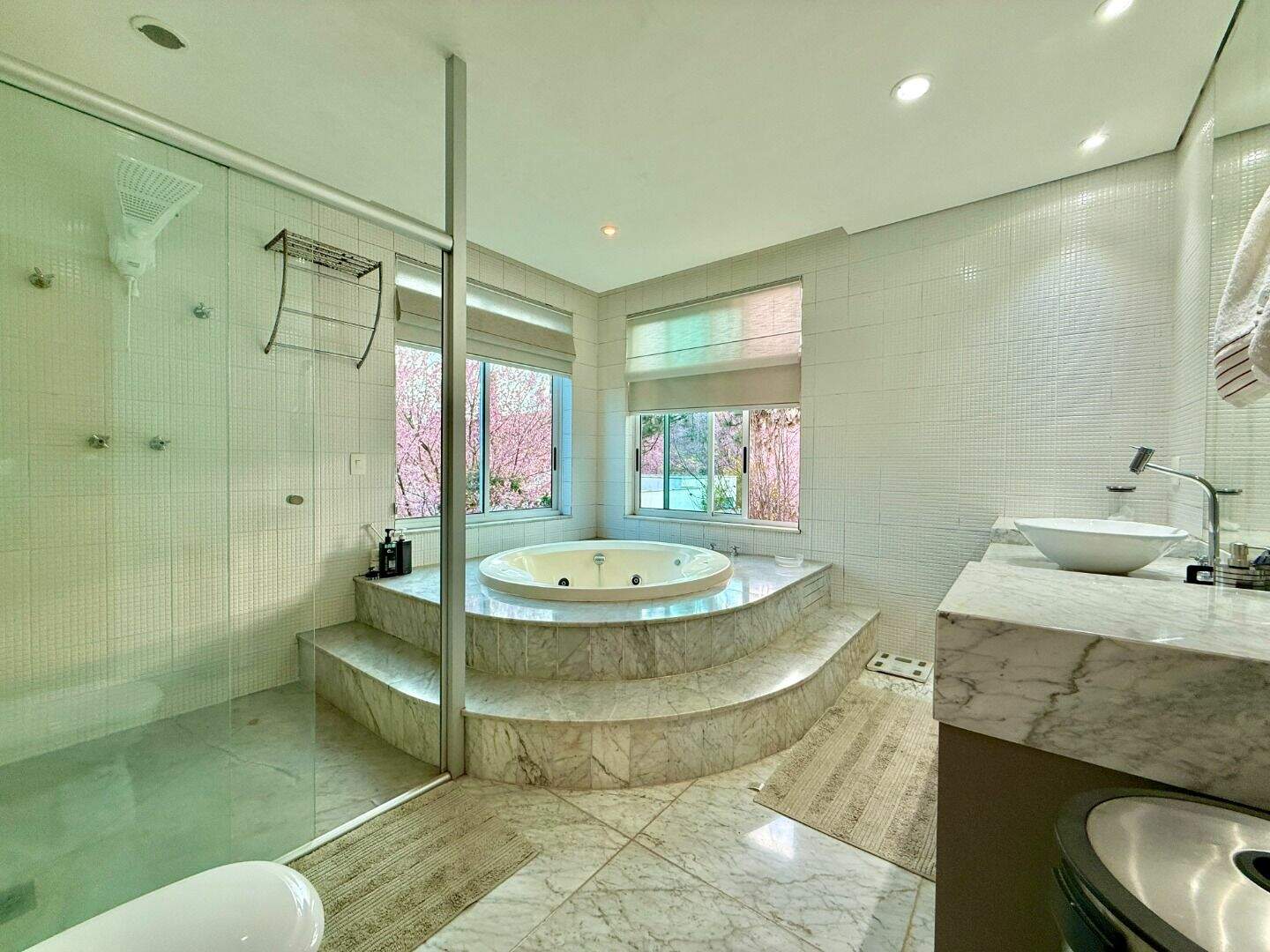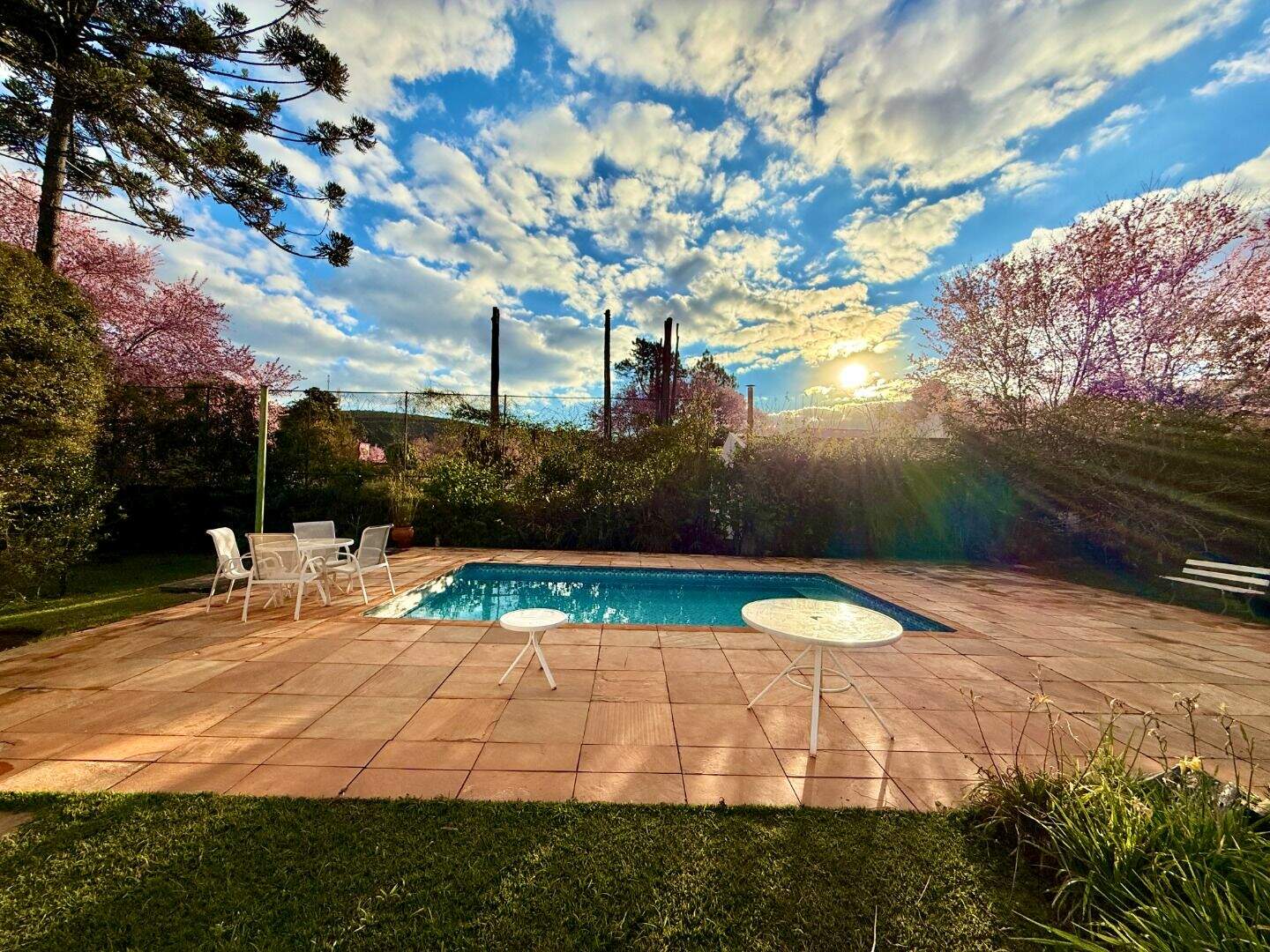 Casa no Condomínio Morro do Chapéu.Gestão Exclusiva Alto Luxo.Casa fica em um terreno plano de 2.100m2Uma casa com área total de 396m2. Casa principal com 3 quartos, sendo uma suíte, banheiro social, lavabo, duas salas conectadas, cozinha tipo americana com armários, área de serviço e despensa.Varanda ampla.Quadra de esportes em concreto e uma piscina.Edícula nos fundos com espaço gourmet, área de serviço, quarto, sauna e um banheiro social.Espaço para depósito.Horta e muitas árvores frutíferas. Casa já tem aquecimento de água, adaptador para carregamento de carro elétrico.