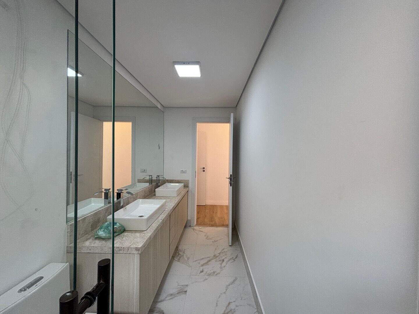 Casa linear, próxima a portaria, localizada no Alphaville.Terraço com vista panorâmica, piscina com infraestrutura para aquecimento ,iluminada e possui cascata, deck de madeira e lavabo para áreas molhadas.Sala de estar e jantar, conjugadas, cozinha americana e cozinha gourmet com churrasqueira. Lavabo.Suíte master com closet e cubas duplas no banheiro. Mais 3 suítes. Armários, previsão para ar condicionado, persianas com controle remoto.Banheiros com armários e boxDCE, lavanderia, quarto de despejo, garagem para 3 carros.