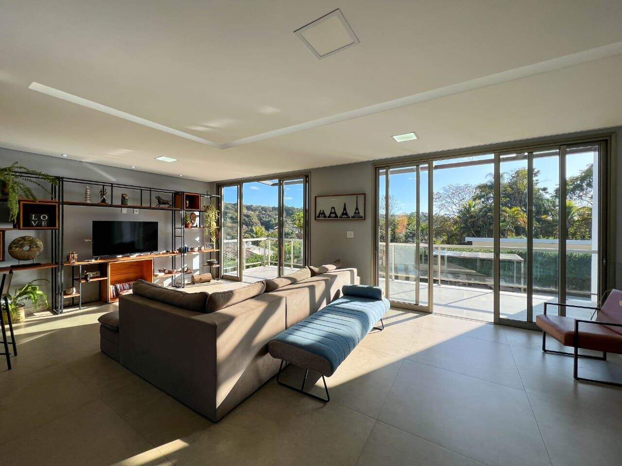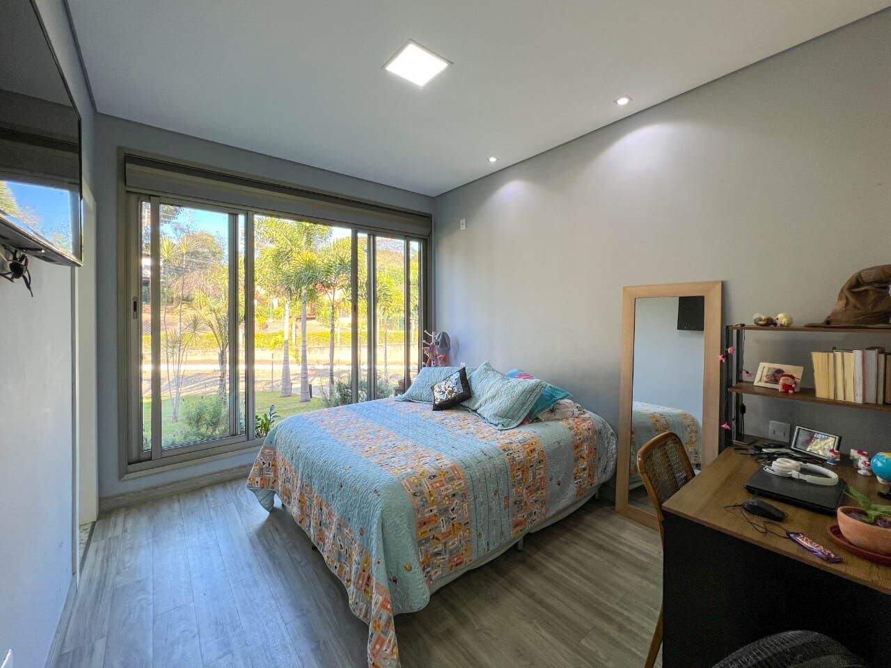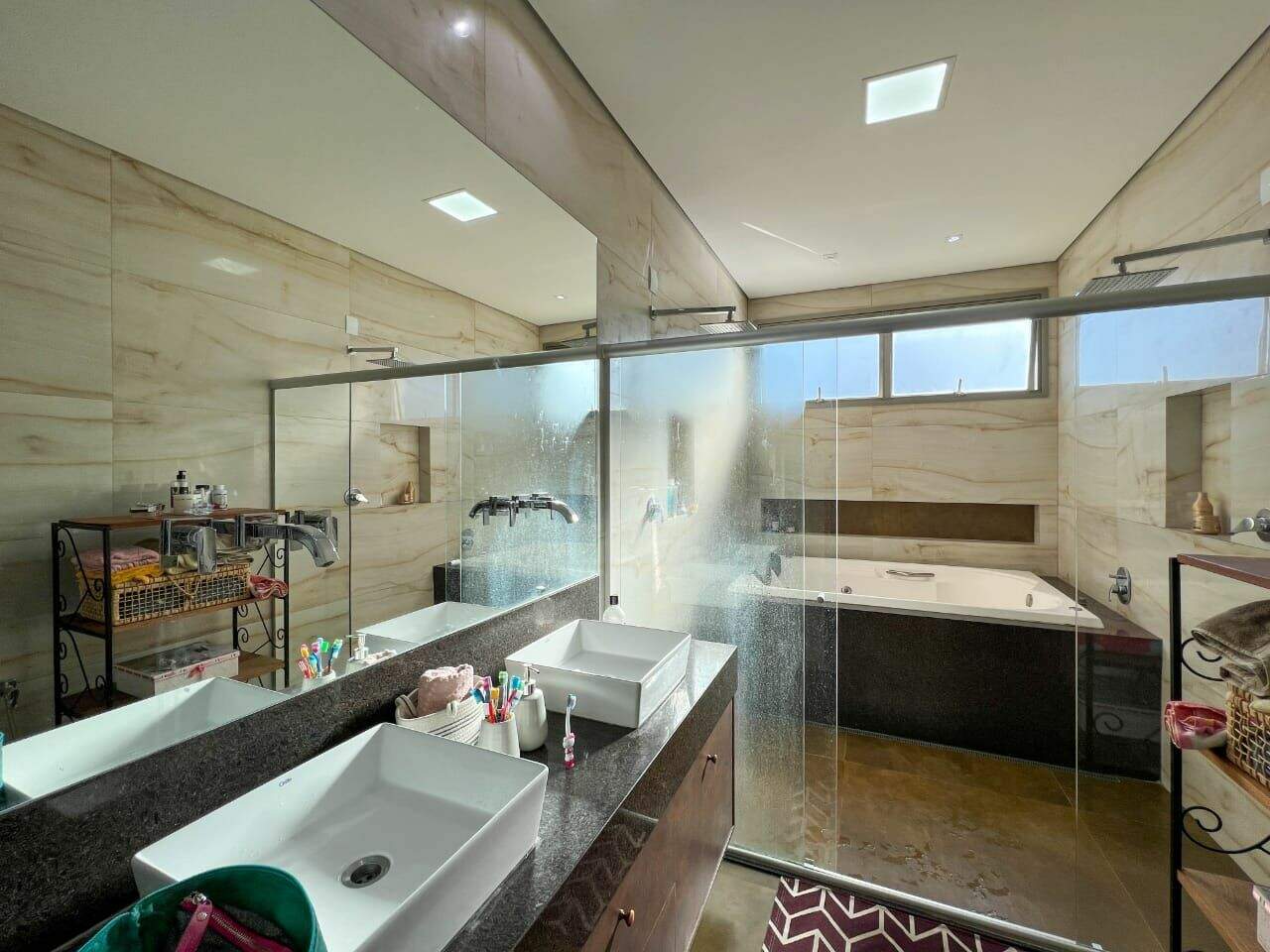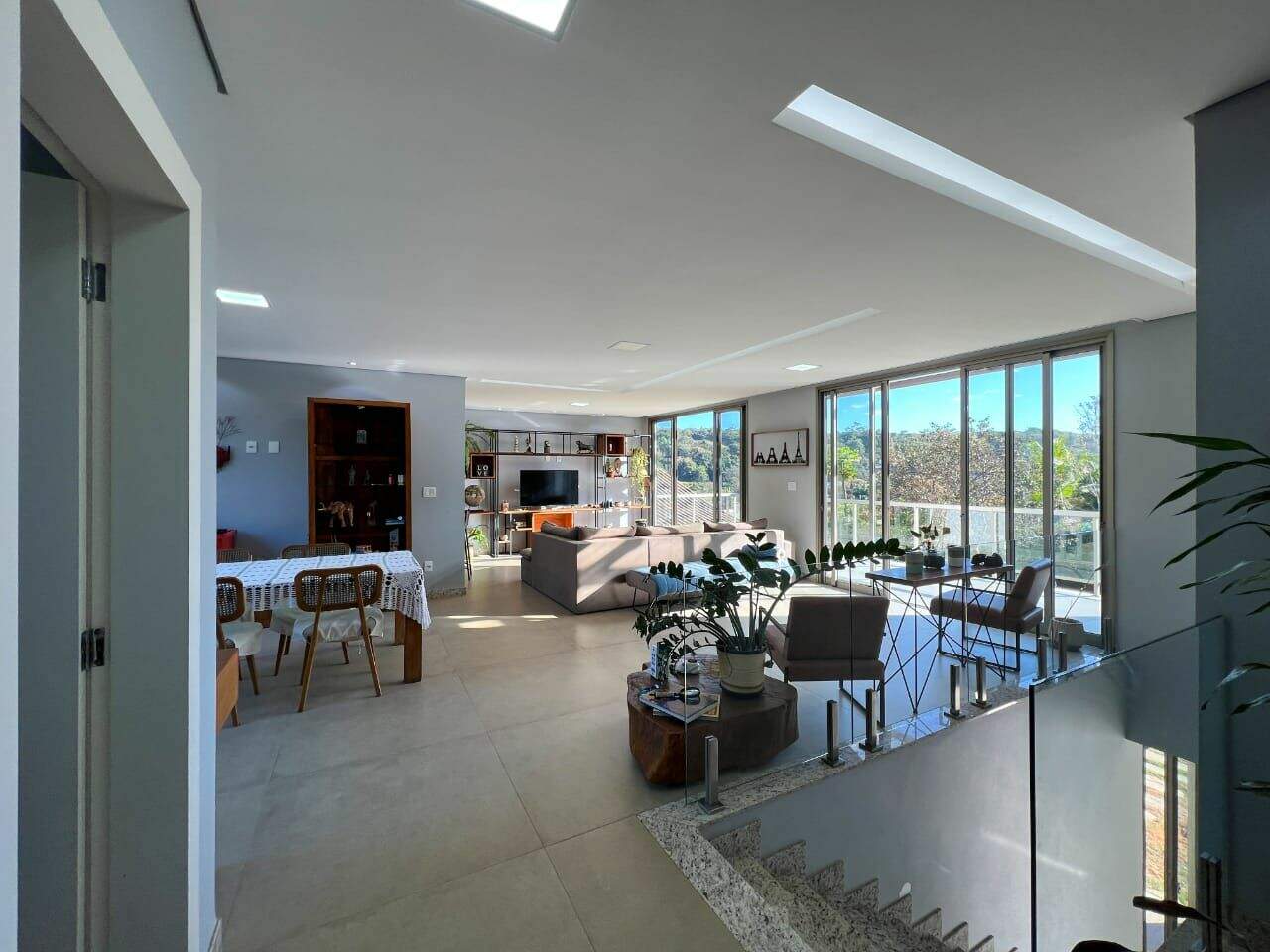 Casa em condomínio Condados da lagoa, Lagoa Santa.São 315 m2 de área construída em um terreno de 1.000 m2, casa com apenas 4 anos de construção.A casa fica em um terreno em declive o que proporciona uma vista indescritível, talvez a melhor vista do condomínio .São 2 níveis dispostos da seguinte forma:Primeiro andar (nível da rua)Fachada moderna, sala para 2 ambientes, lavabo, cozinha .Estar íntimo, 4 suítes sendo a máster com closet , hidromassagem e varanda. Segundo andar (abaixo do nível da rua):4 vagas cobertas de garagem para carros grandes e espaço para mais vagas descobertas para carros de visitantes.Área gourmet com churrasqueira, forno de pizza com bancadas em granito, piscina aquecida com cascata, sauna molhada e pergolado.Acabamentos:Piso da salas em porcelanato de grande formato, piso da área de lazer em porcelanato, piscina em vinil, área íntima em vinílico. Bancadas da área gourmet e cozinha em granito são GabrielInfraestrutura:Casa com água quente por placas solares, filtro de água central, aquecimento solar da água da piscina.Obs: Sempre consulte os valores com nossos especialistas, os valores podem se alterar sem prévio aviso.