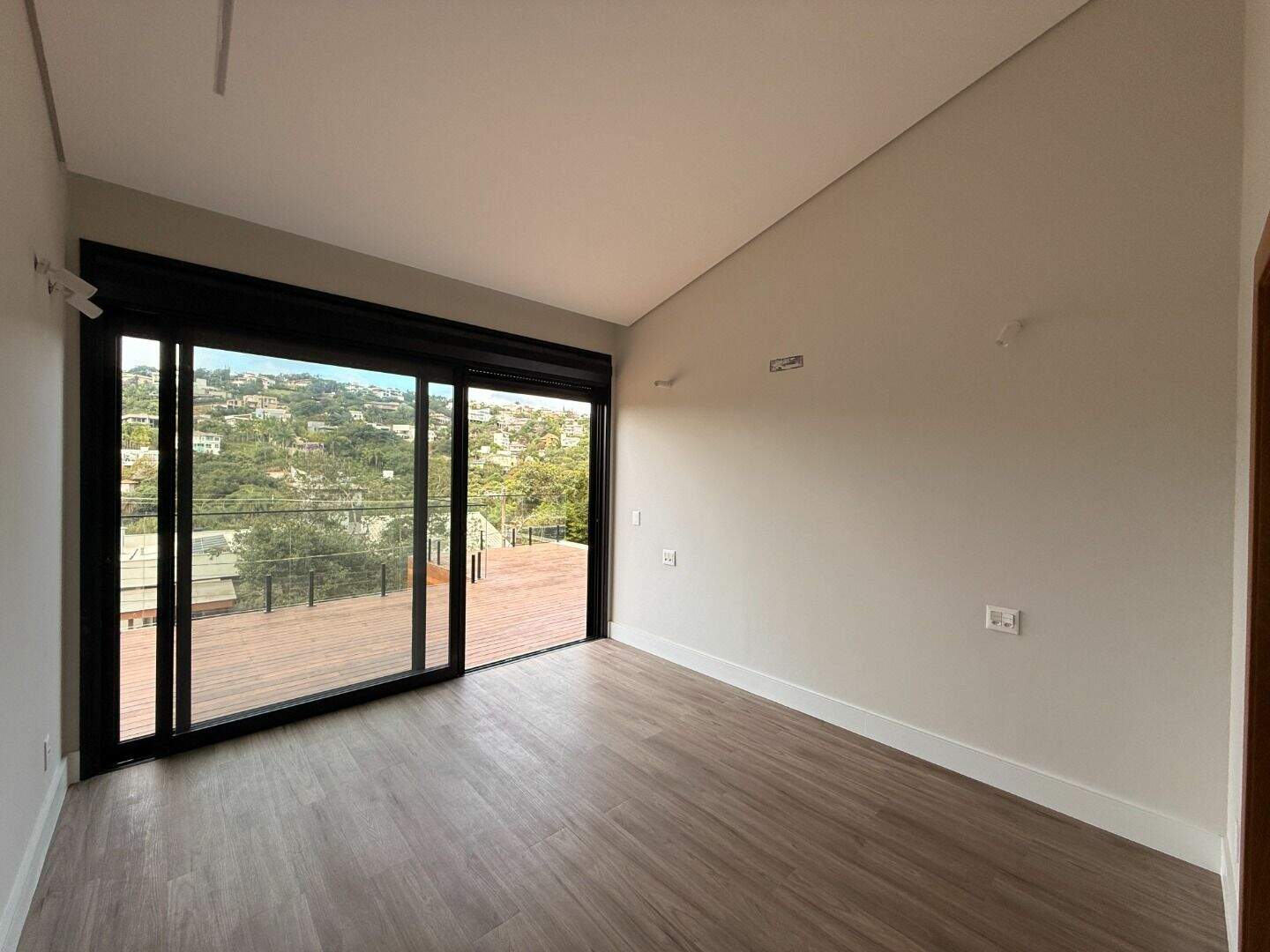 Casa no Condomínio Bosque da Ribeira - Nova Lima Casa nova no plano com vista . Imóvel todo construído num único pavimento ,totalmente accessível e sem escadas internas. São 4 suítes com pé direito alto, banhos em acabamento de mármore Bege Bahia e iluminação de LED. Projeção para ar condicionado. Ampla sala integrada com pé direito duplo ,cozinha americana ,espaço gourmet em granito ,piscina de borda infinita e aquecida, Deck, e suíte para funcionários, vista para mata e montanhas.4 vagas de garagem livres (possibilidade de expansão no pavimento do nível acima da garagem ). Jardim gramado nos fundos e projeto paisagístico com iluminação e irrigação na fachada. Arquitetura contemporânea, clean e com forro de madeira no estar.