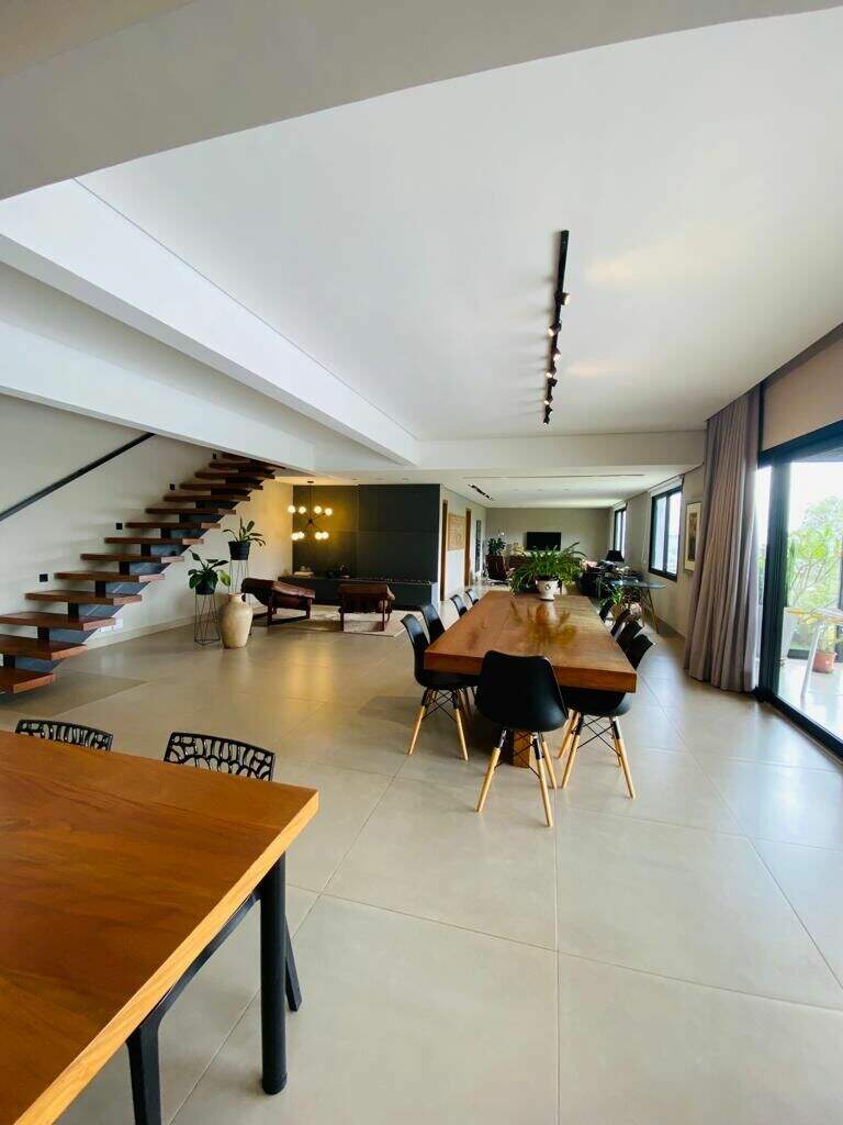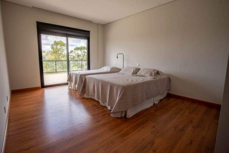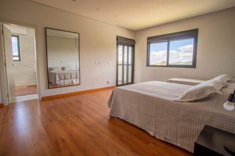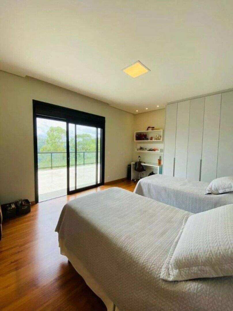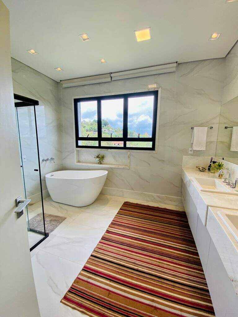 Casa Nova de 450m² de área construída com ambientes internos amplamente integrados, 4 suítes e área gourmet completa com uma linda vista panorâmica.Próximo da APP do condomínio, a casa possui um salão amplo para até 4 ambientes, lareira, lavabo, 1 suíte, cozinha americana, espaço gourmet com portas de correr integrando a sala. Escada interna em pranchão de madeira.No 2 nível 3 amplas suítes com venezianas retrateis automatizadas e varanda. A suíte master possui closet, estar íntimo e hidromassagem. Ainda conta com terraço descoberto estendendo os espaços dos quartos.A estrutura da casa conta com aquecimento solar central de água e geração de energia fotovoltaica.Garagem coberta para 3 carros e descoberta até 3 carrosEste condomínio está inserido dentro de outro condomínio referencia no Vila da Serra chamado Vila Castela, conta ainda com toda sua infra-estrutura de segurança e controle de acesso, além de toda comodidade que se encontra na região.