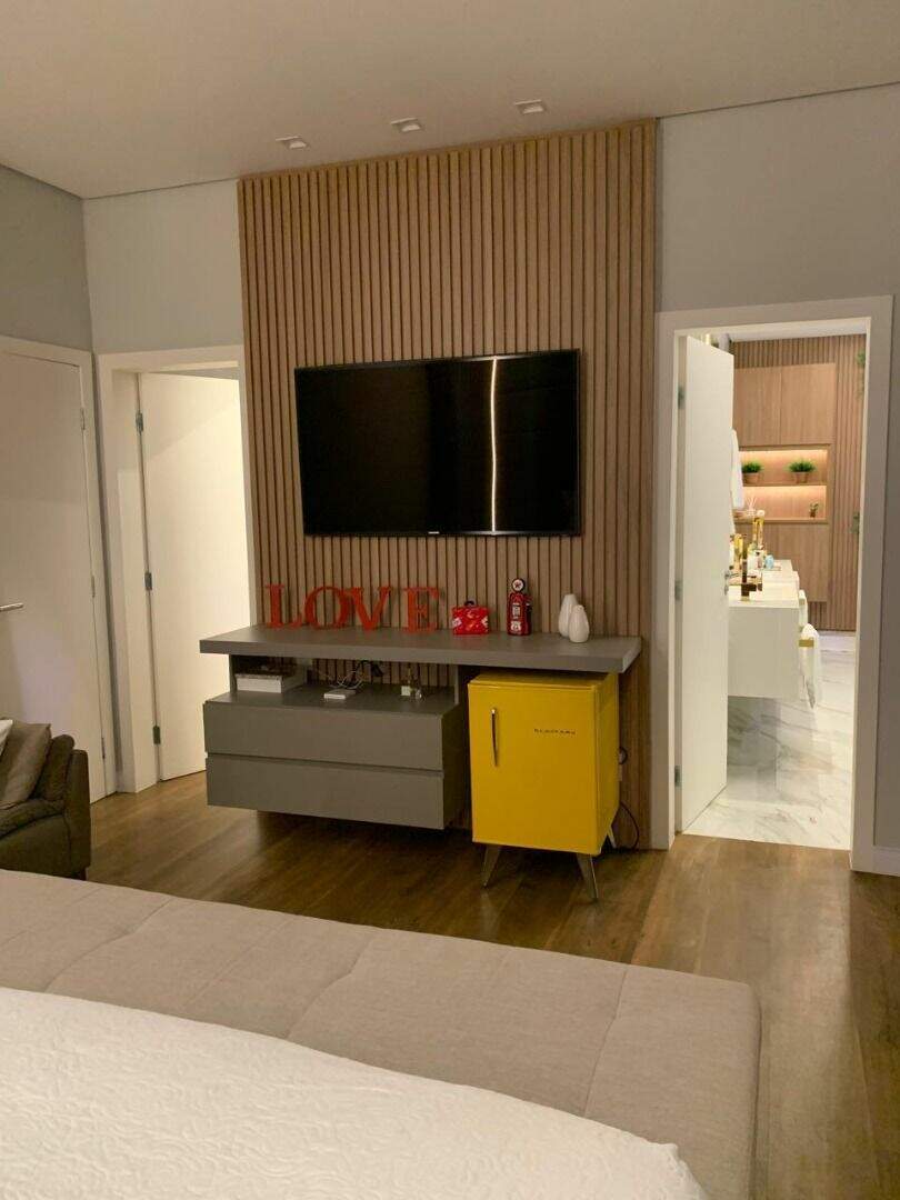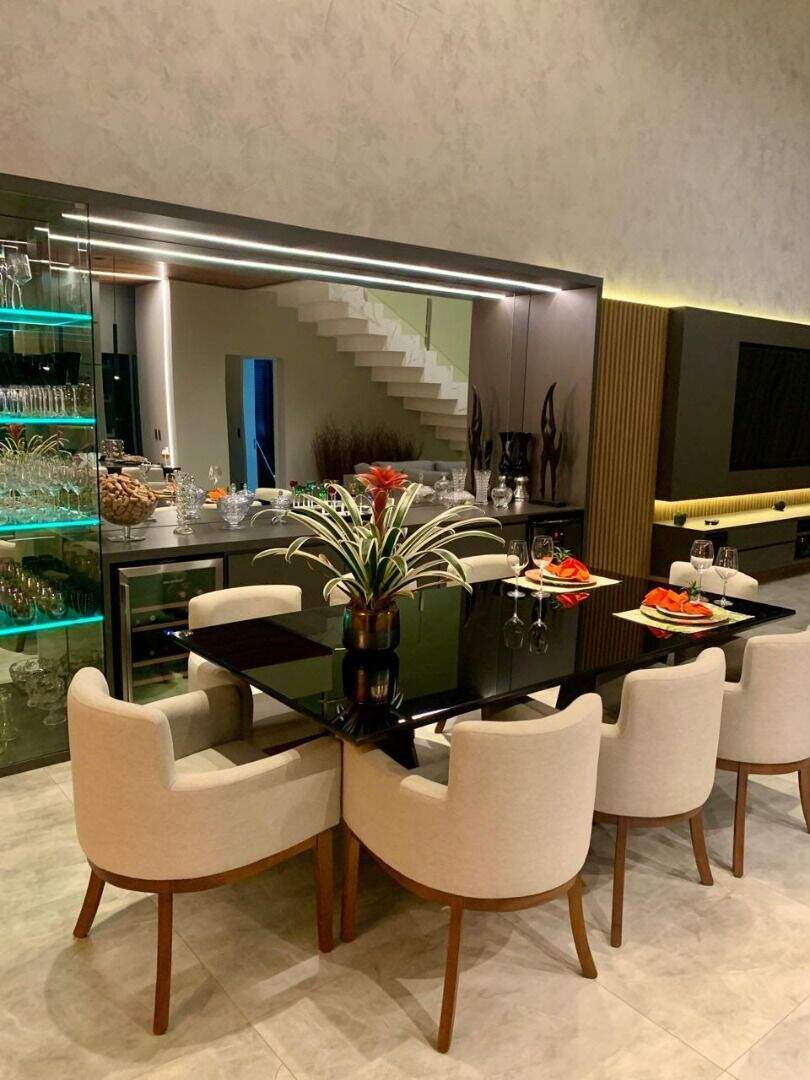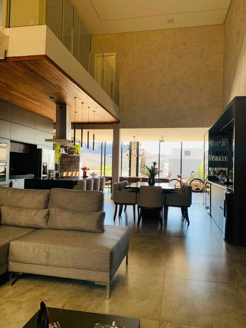 Casa de Luxo à Venda - Alphaville Lagoa dos InglesesÁrea construída: 450m² 4 quartos | 2 suítes e 2 Semi-Suítes | 4 banheirosSofisticação e tecnologia !!!Casa exclusiva combina modernidade e conforto. Automação completa, comandos por viva voz e móveis de alto padrão, oferece um ambiente sofisticado e funcional. Os espaços foram cuidadosamente planejados para proporcionar o máximo de bem-estar, incluindo sala de estar, sala de jantar, escritório, suítes, cozinha equipada e uma espetacular área gourmet. O lazer se completa com piscina automatizada, lounge com lareira e um paisagismo impecável. Automação Completa: Controle total dos ambientes, incluindo iluminação, temperatura e comandos de voz. Mobiliário Exclusivo: Peças de alto padrão em todos os cômodos. Cozinha Gourmet: Ilha suspensa em granito preto absoluto, eletrodomésticos embutidos Brastemp, geladeira automatizada, despensa ampla e muito mais. Área Externa: Jardim com irrigação, piscina com hidromassagem automatizada, cascata, aquecimento solar e sistema eletrônico de cloro. Lounge Fogo de Chão: Revestimento em porcelanato amadeirado, bancos iluminados em LED, lareira a lenha e guarda-corpo em vidro. Subsolo de 300m²: Espaço versátil que pode ser utilizado como ampla garagem, salão de festas, academia, entre outras possibilidades. Sustentabilidade: Sistema de energia fotovoltaica e iluminação estratégica em LED. Conforto e Segurança: Garagem coberta para dois carros, adega climatizada, cervejeira e iluminação em pontos estratégicos.área gourmet | área externa | piscina | lounge fogo de chão