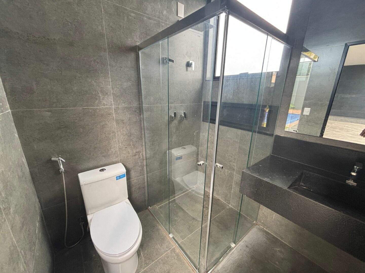 Casa com 4 suítes, em dois pavimentos, dispostos da seguinte forma:No nível da rua, sala ampla para 3 ambientes, lavabo, escritório com banho privativo, cozinha super equipada, despensa e área gourmet, piscina ,braseiro a gás, garagem para até 6 carros e área de serviço.No segundo andar, suíte máster com closet, banheiro com chuveiros duplos e box. Mais 3 suítes sendo 2 com closet e uma delas com solarium. Copa noturna, rouparia. Infraestrutura: infra para ar condicionado, fotovoltaica, janelas com persianas automáticas. Acabamentos: Porcelanato e laminado nos pisos, granito nas bancadas.