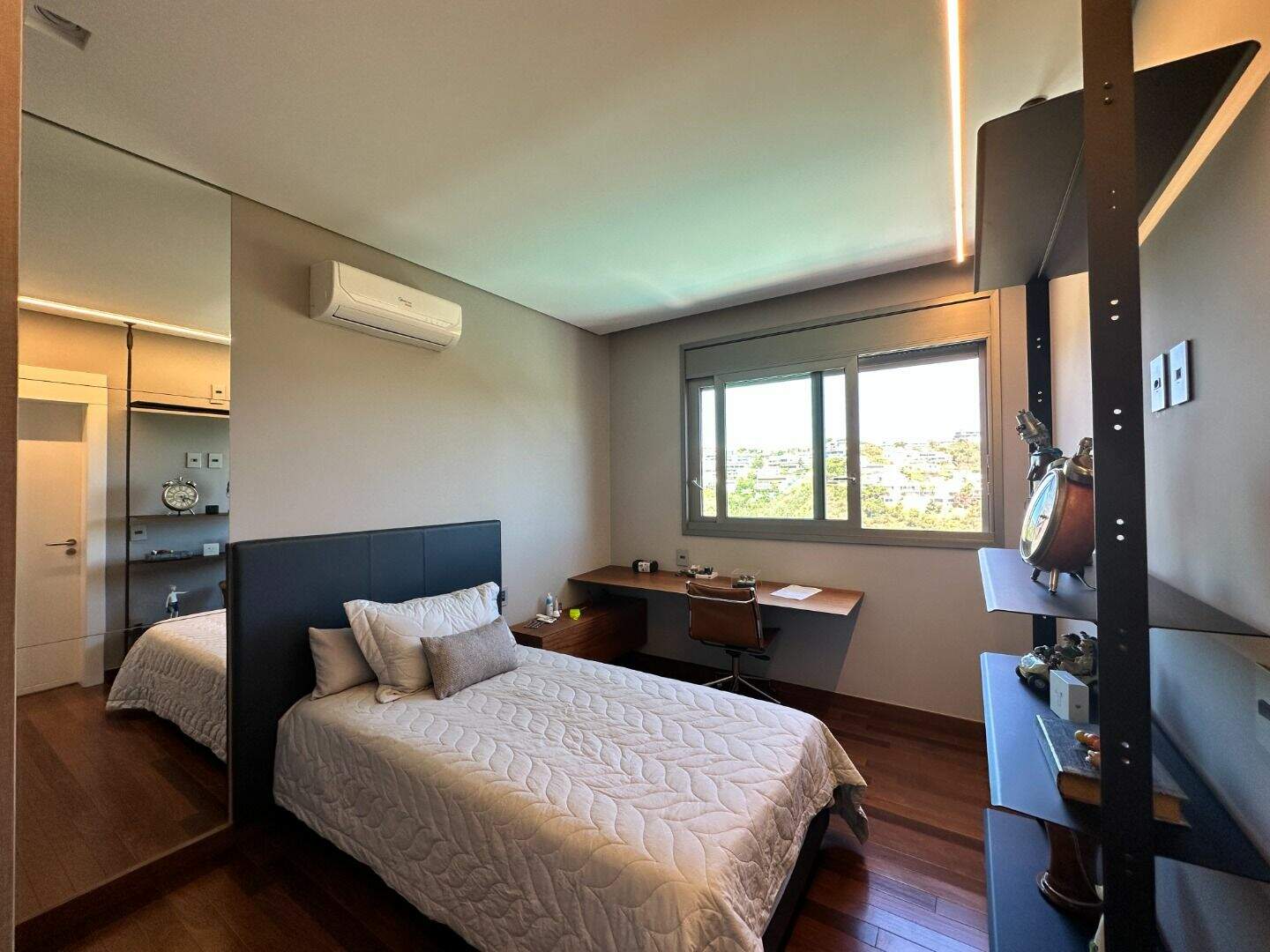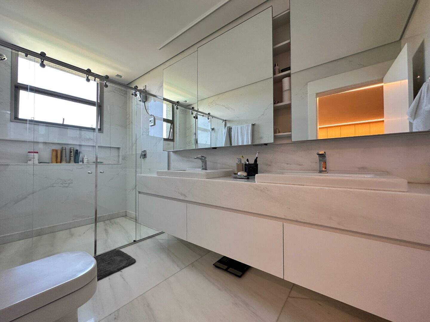 Casa no Condomínio Nascentes - Vale dos Cristais- Nova LimaCASA LINEAR, todas as 4 suítes e as salas em um mesmo nível.Sala ampla para 2 ambientes, sala de cinema, lavabo, cozinha ampla, toda parte social com piso em mármore travertino de alta qualidade, neste mesmo nível temos as 4 suítes finamente decoradas com armários feitos sob medida e o piso em madeira maciça.Um lance de escada abaixo temos o espaço gourmet que foi completamente revitalizado, com adega, área de serviço e suíte de funcionários, lavabo e acesso a uma linda piscina com vista para o Vila da Serra. Garagem para 6 carros paralelos e um paisagismo de excelente bom gosto.