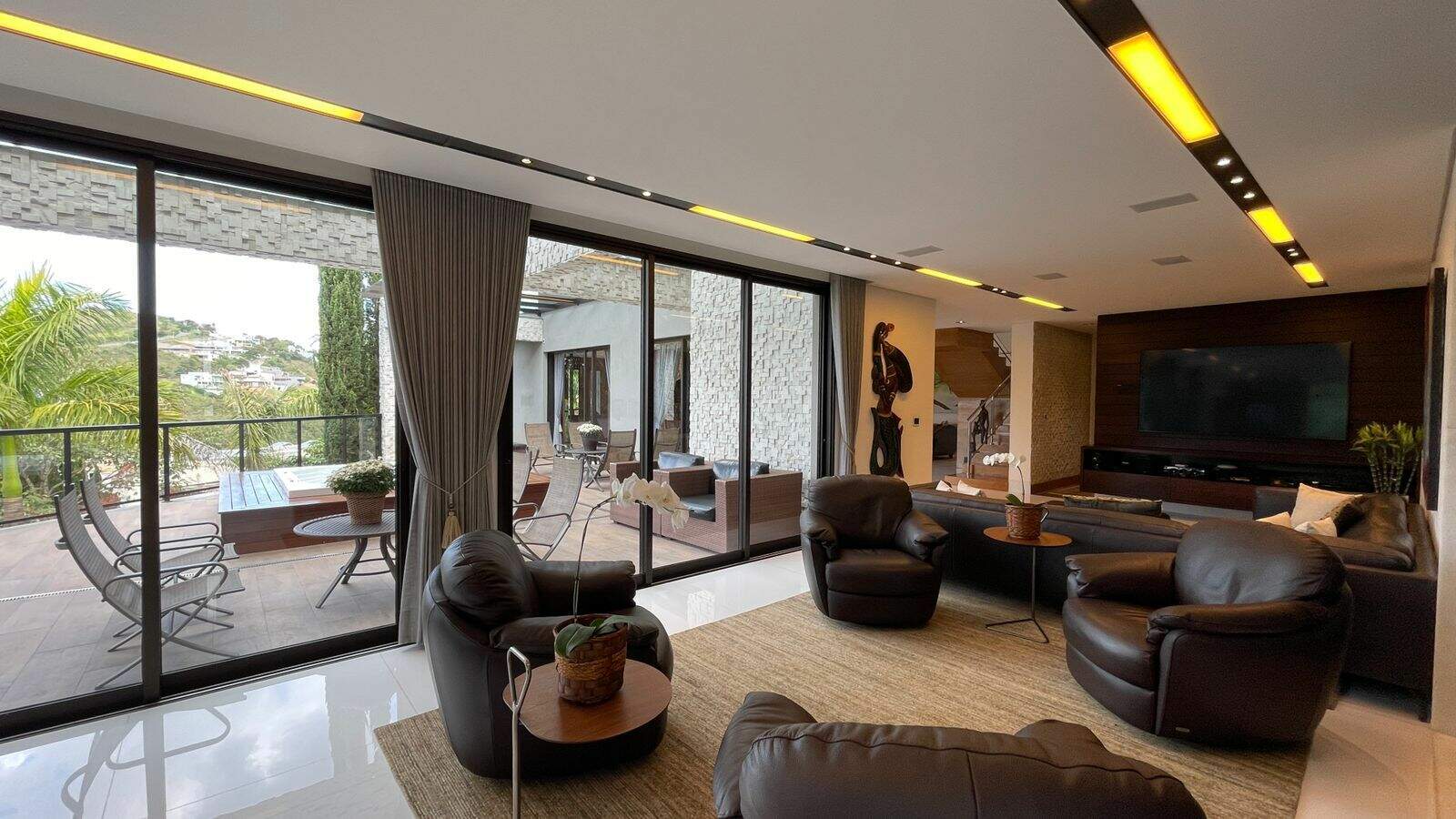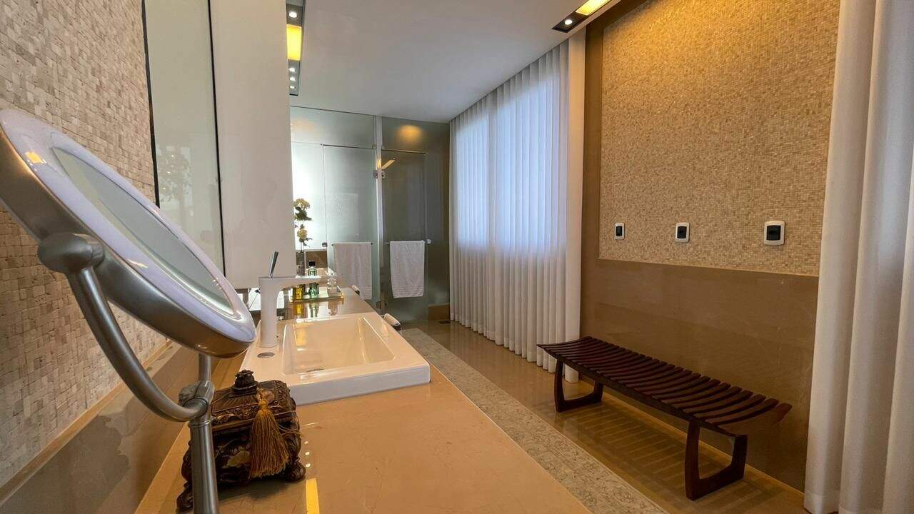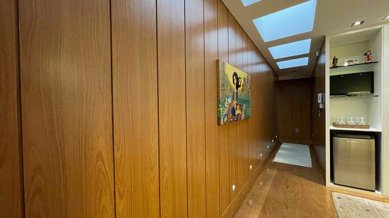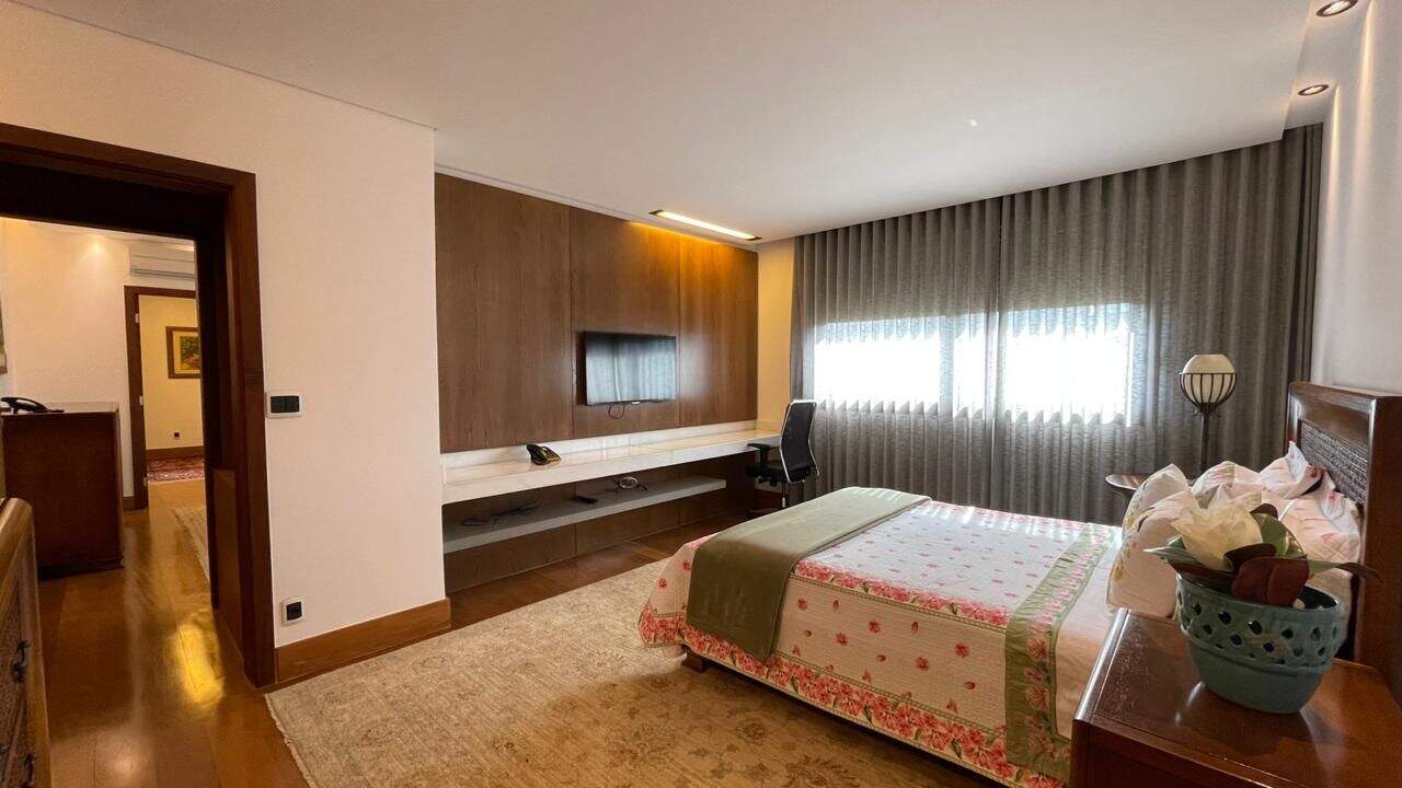 Linda casa com 844m2, construída em 3 pavimentos e acessados por elevador:Primeiro pavimento: Ampla sala de estar com pé direito duplo, sala de tv, 2 escritórios, lavabo, adega, cozinha/copa, área gourmet integrada com a cozinha e com a piscina, área de serviço, 2 quartos e copa para funcionários com banheiro, espaço externo para pet e horta.Segundo pavimento: Copa de apoio, rouparia, 4 suítescom closets, sendo a máster com hidromassagem.Piso inferior: Academia, suíte para motorista e garagem para 6 carros.Acabamento em granito, mármore e marcenaria. A casa possui aquecimento solar, carregador para carro elétrico ear condicionado.Obs: Sempre consulte os valores com nossos especialistas, os valores podem se alterar sem prévio aviso.
