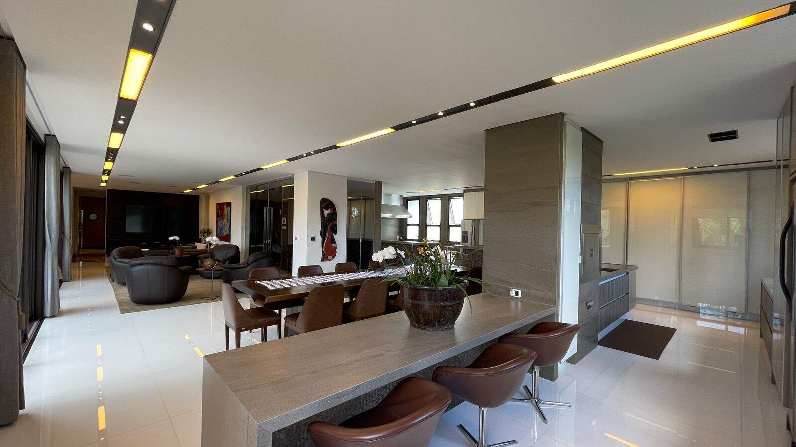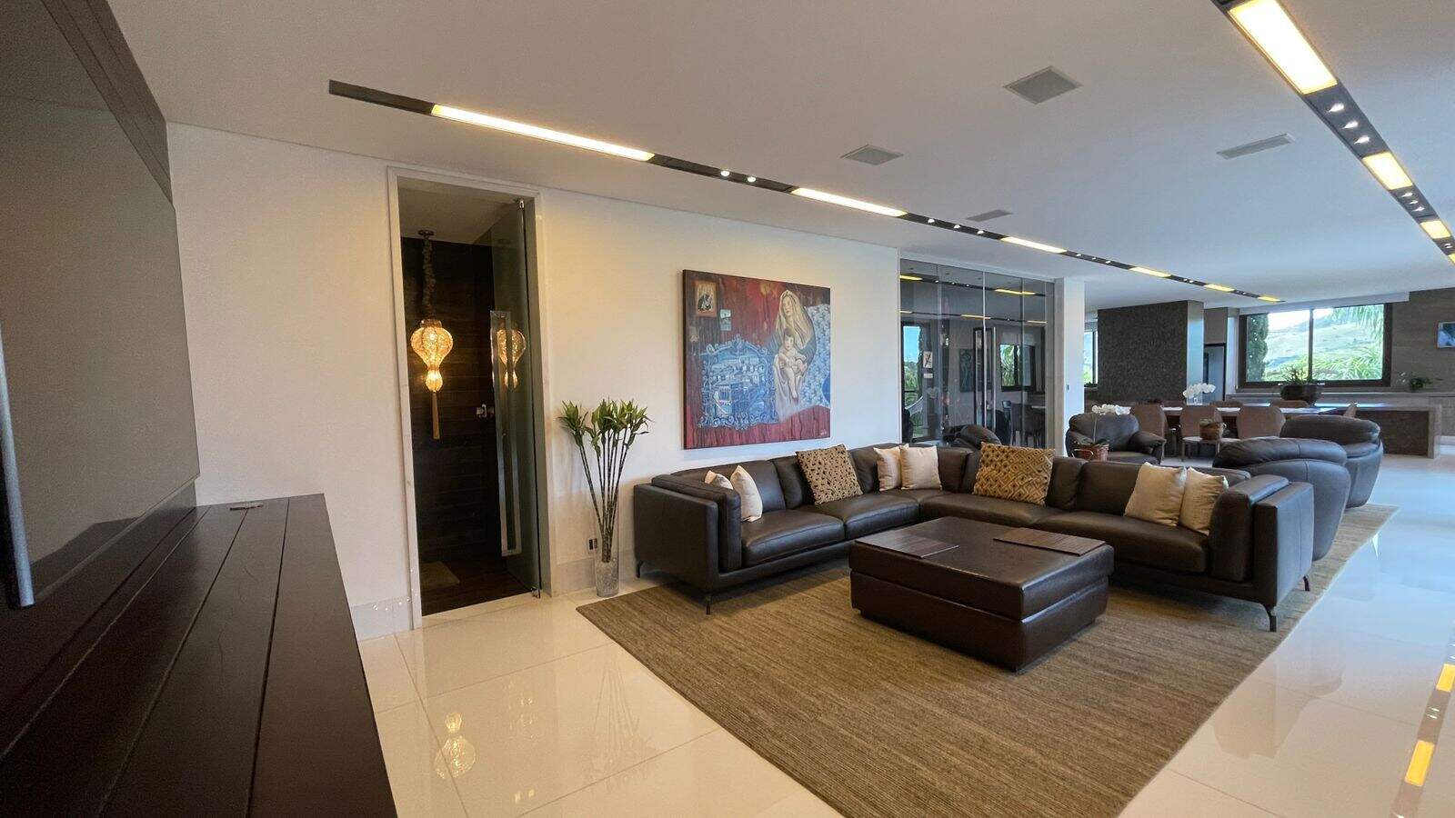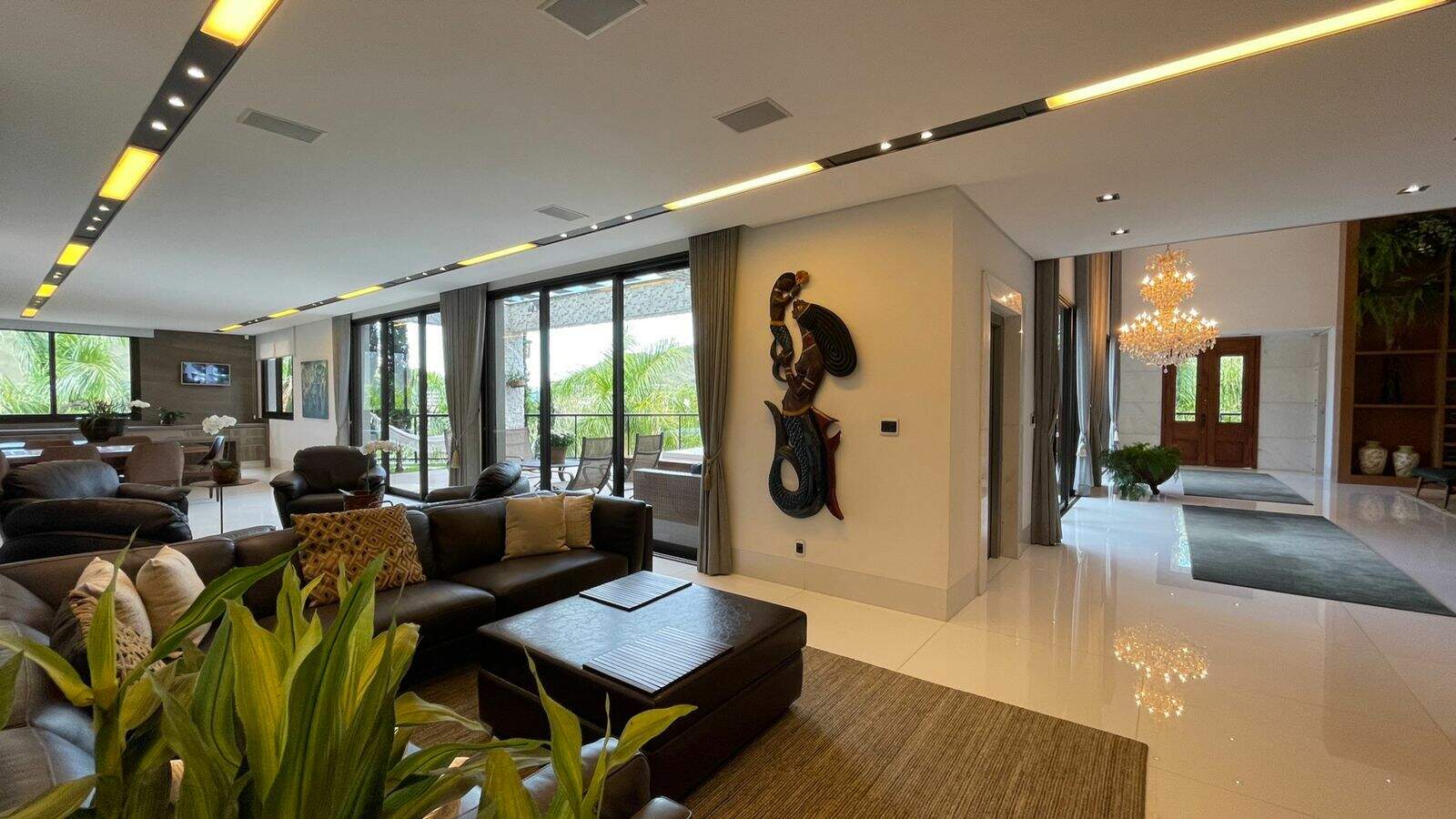Linda casa com 844m2, construída em 3 pavimentos e acessados por elevador:Primeiro pavimento: Ampla sala de estar com pé direito duplo, sala de tv, 2 escritórios, lavabo, adega, cozinha/copa, área gourmet integrada com a cozinha e com a piscina, área de serviço, 2 quartos e copa para funcionários com banheiro, espaço externo para pet e horta.Segundo pavimento: Copa de apoio, rouparia, 4 suítescom closets, sendo a máster com hidromassagem.Piso inferior: Academia, suíte para motorista e garagem para 6 carros.Acabamento em granito, mármore e marcenaria. A casa possui aquecimento solar, carregador para carro elétrico ear condicionado.Obs: Sempre consulte os valores com nossos especialistas, os valores podem se alterar sem prévio aviso.