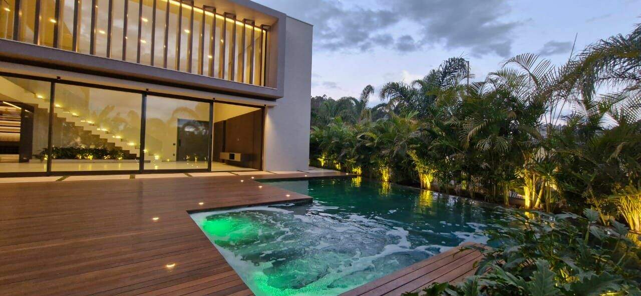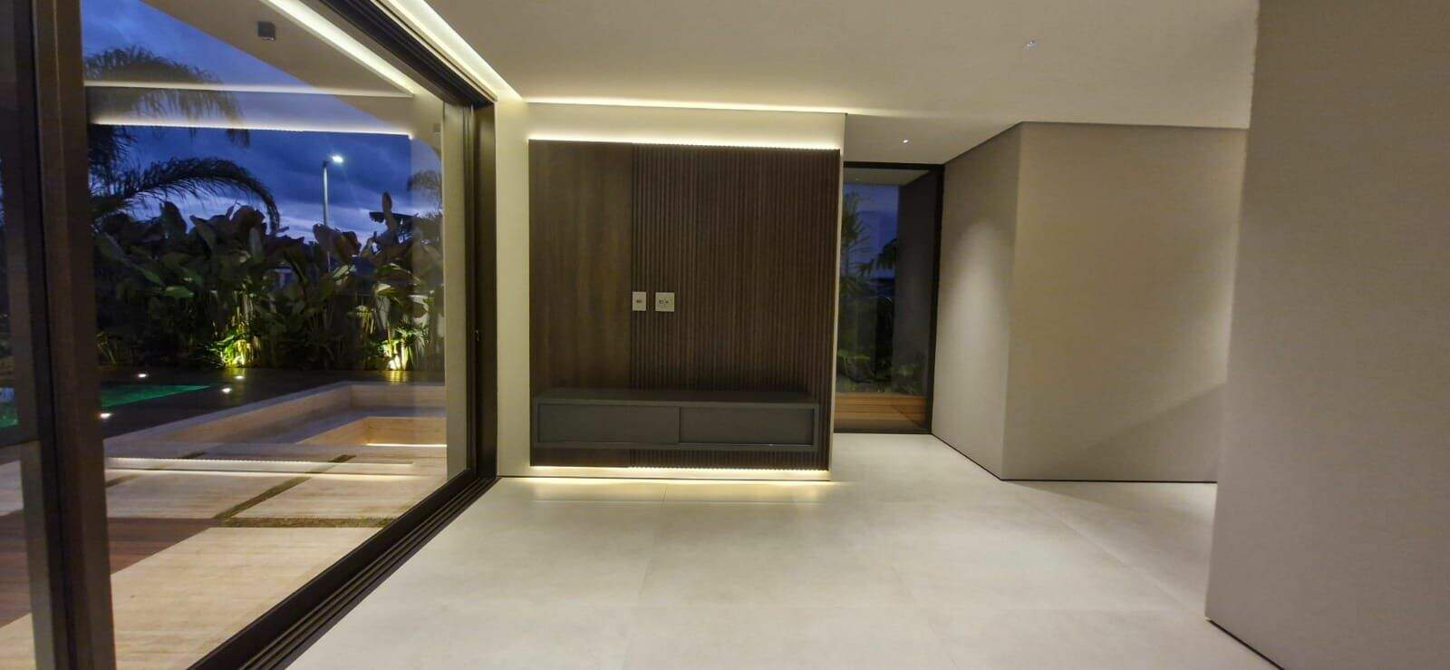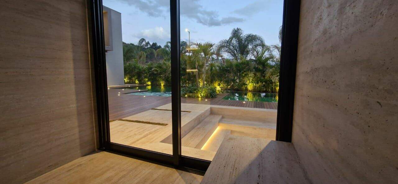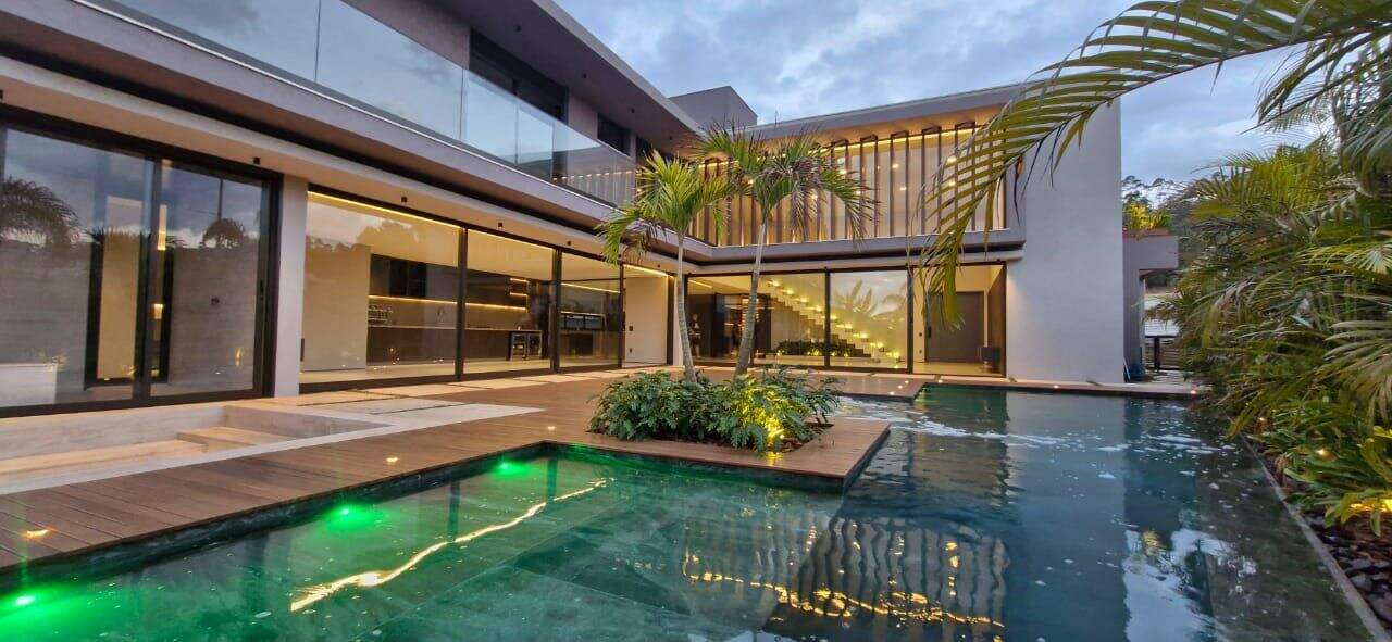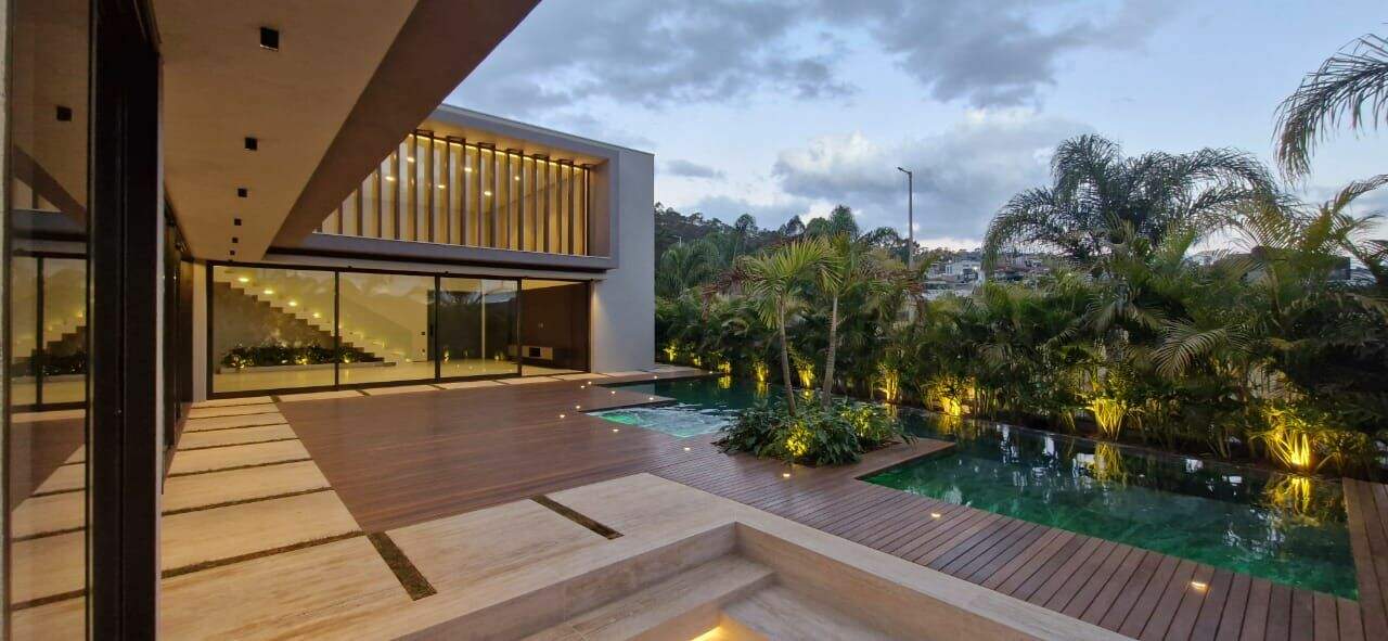 * Casa Laguna no Alphaville Lagoa dos Ingleses, infraestrutura completa nesse bairro.* 636,88m² de área construída em lote de 745,41m²* 4 suítes.* 7 banheiros no total* 6 vagas de garagem (4 cobertas e 2 descobertas)* Sala com pé direito duplo e piso porcelanato 1,20m x 1,20m* Quartos com piso vinílico amadeirado* Suíte master com closet, varanda com vista e banho com duas cubas e dois chuveiros* Cozinha com ilha, torre quente e armários planejados* Área gourmet com churrasqueira, bancada em granito e integração total* Piscina com prainha revestida em pedra Hijau e preparação para aquecimento* Spa com hidromassagem e sauna úmida integrada à piscina* Fire Pit (fogo de chão)* Adega climatizada com acabamento em vidro* Iluminação 100% LED com projeto luminotécnico assinado* Automação residencial (iluminação, som, persianas e climatização)* Paisagismo com iluminação de destaque na fachada* Energia fotovoltaica e aquecimento solar com apoio elétrico* Esquadrias em alumínio preto com vidro refletivo na fachada* Revestimentos de alto padrão e acabamentos com estilo atemporal e sofisticado* Louças e metais Deca, tomadas USB e preparação para ar-condicionado nos principais ambientes