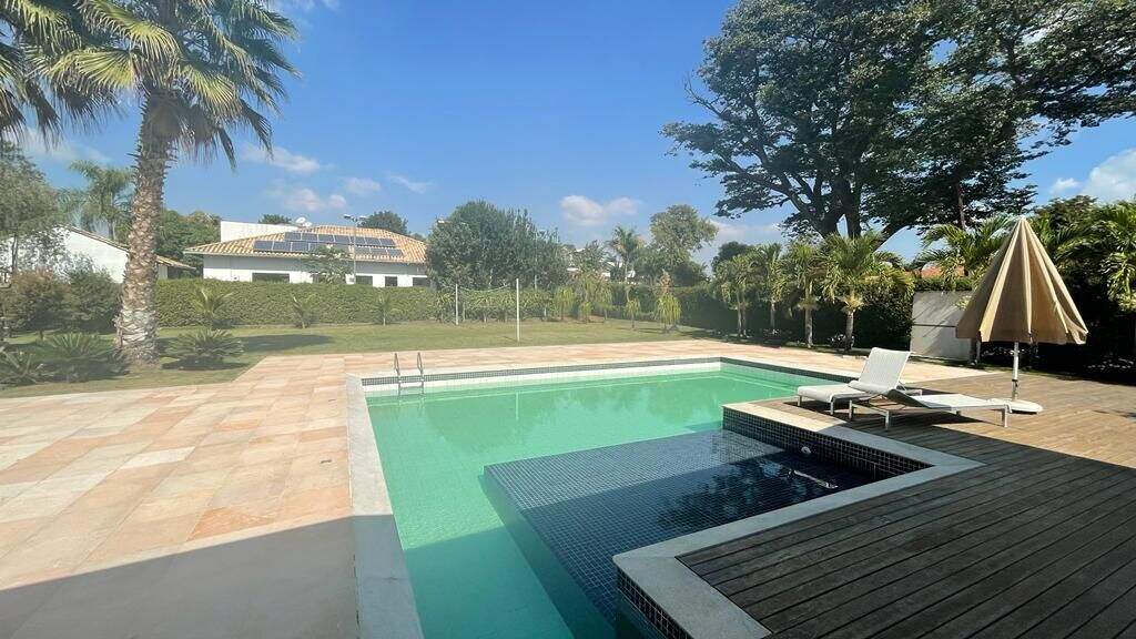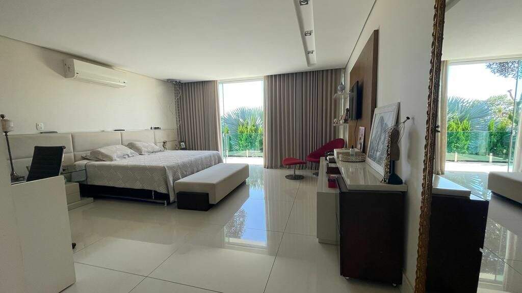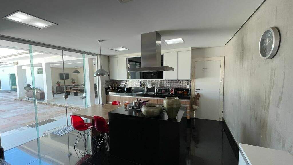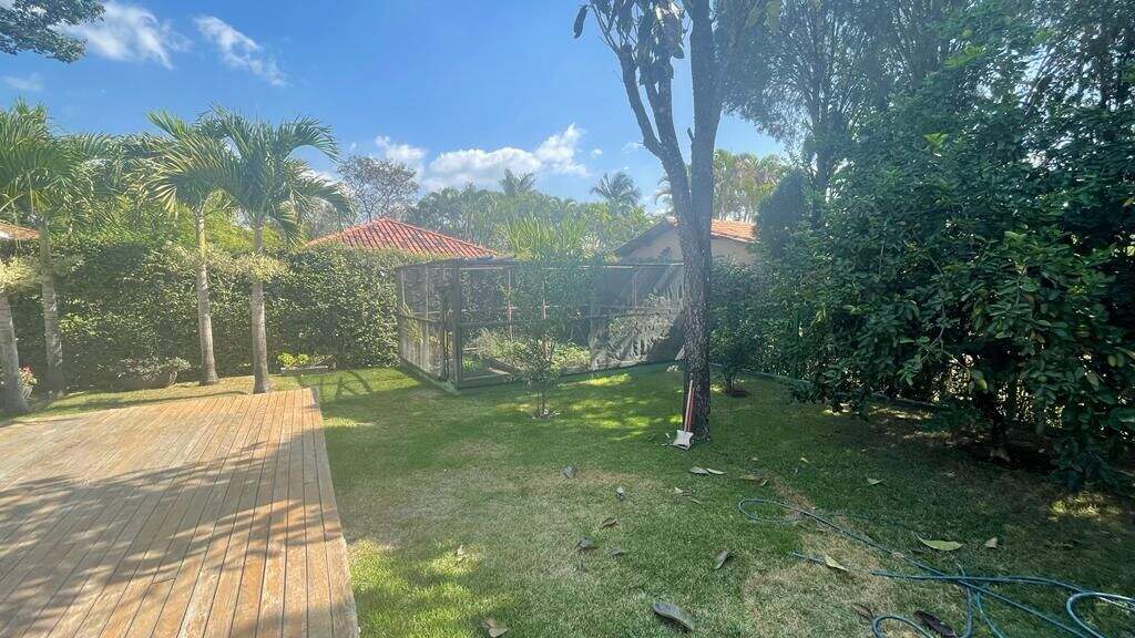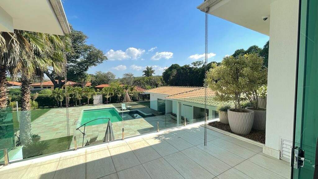 Casa no condominio Condados da Lagoa, Lagoa SantaSão 550m² de área construída em um terreno de 2440m². A casa fica em um terreno plano.São dois andares dispostos da seguinte forma:Primeiro andar:Sala ampla para dois ambientes, conjugada entre sala de jantar e sala de estar, jardim de inverno que deixa o ambiente aconchegante e elegante, sala de cinema com telão e projetor, 1 quarto amplo com armários planejados e ar condicionado, banheiro social com lavabo, cozinha com ilha,cook top e coifa com armários planejados, bancada em granito com 2 bojos em inox, espaço gourmert com churrasqueira e forno de pizza, bancadas em granito, armário planejado, banheiro masculino e feminino com lavabo, piscina, sauna, campo de futebol e amplo espaço verde.Segundo andar:Estar íntimo com varanda, 2 suites master com varanda, closet amplo, hidromassagem e 2 duchas.Ifraestrutura:Agua,aquecimento solar, energia eletrica,esgoto, ar condicionado, irrigação eletronica, canil, internet, tv acabo, quarto de despejo, paisagismo, terreno todo gramado com irrigação eletrônica e iluminação, área de serviço com armário planejados, 1 banheiro de apoio.Acabamento:Porcelanato, piso ceramico, bancadas em granito, ármarios planejados, piscina em alvenaria revestida com pastilha, vidros em blindex, lavatório em louça, escada em marmore com guarda corpo em blindex.Obs: Sempre consulte os valores com nossos especialistas, os valores podem se alterar sem prévio aviso.