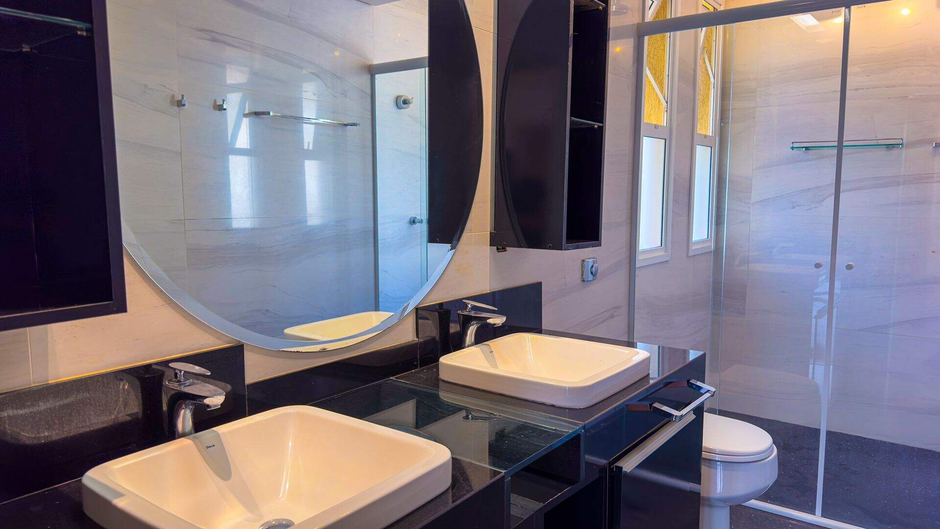 Residência com área total de 670 m² de área construída no condomínio Quintas do Sol em Nova Lima, composta por:1 Nível:Ampla sala integrada para três ambientes, com piso em madeira, lareira, home cinema, lavabo e sala de jantar com acabamentos em mármore e porcelanato, além de uma cristaleira;Cozinha em conceito aberto, com piso em porcelanato, bancadas em granito, armários planejados, despensa, dependência completa de empregada e lavanderia;Garagem coberta para 3 veículos;Área gourmet equipada com churrasqueira, espaço para TV, sala de jogos, varanda externa com atelier, sauna, banheiro, piscina, suporte para canil e quarto de motorista com banheiro.2 Nível:Varanda com vista panorâmica para as montanhas;5 quartos, sendo 3 suítes (uma master com closet, ar-condicionado, piso em madeira e banho com acabamentos em mármore e nanoglass) e 2 semi-suítes (com piso em cerâmica e bancadas em granito);Demais suítes com pisos em porcelanato e bancadas em granito;Home-office com armários e rouparia.Condomínio:Segurança 24 horas, controle de acesso, monitoramento por câmeras, rondas e divisas protegidas;Extensa área verde, lago com cascata e mirante;Área de lazer completa, incluindo clube interno com piscina aquecida coberta, espaço gourmet, salão de festas, academia e quadra de tênis coberta em saibro.Localizado em uma rua plana e tranquila, com fácil acesso à portaria e cercado pela natureza.