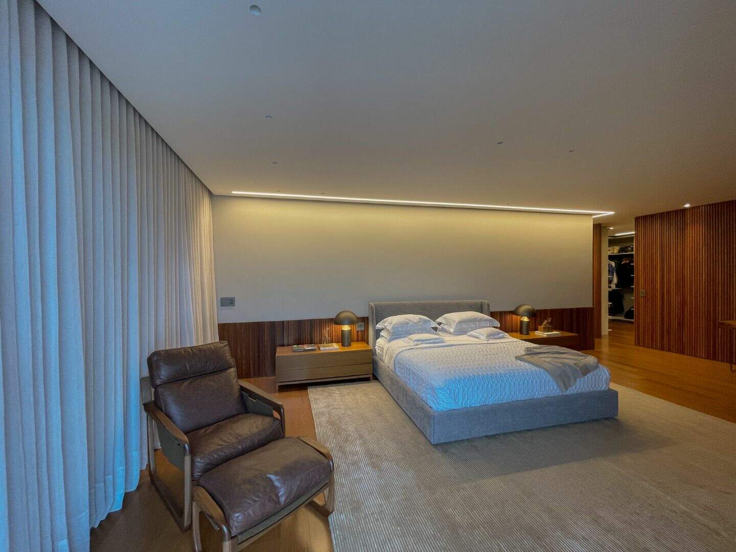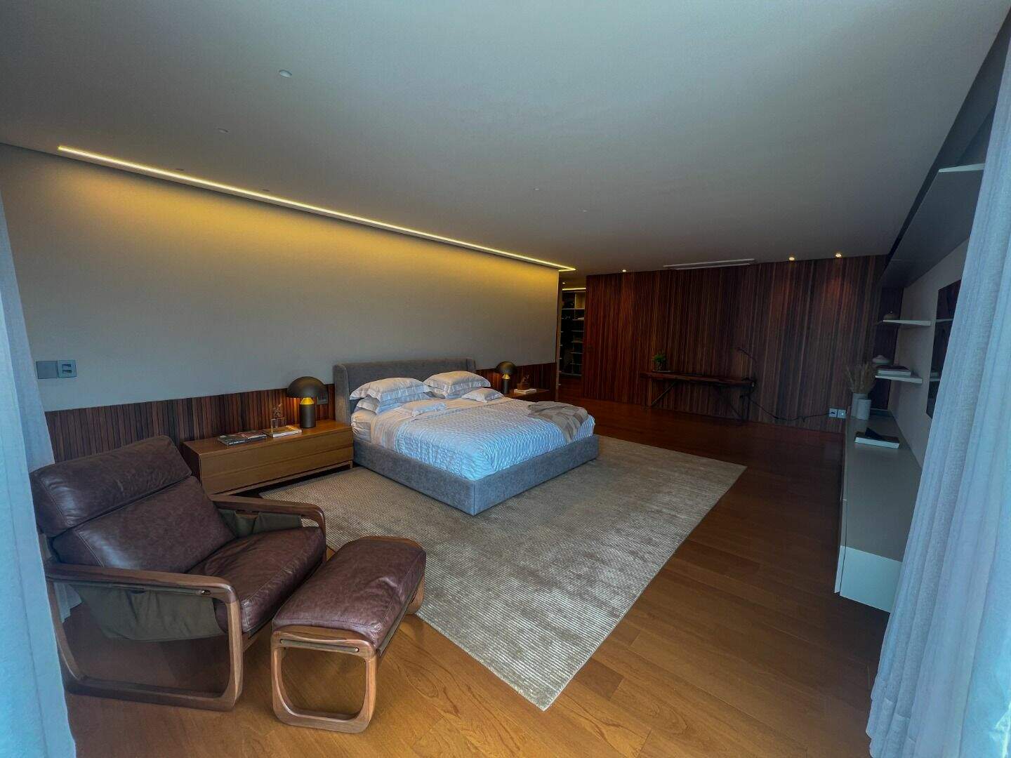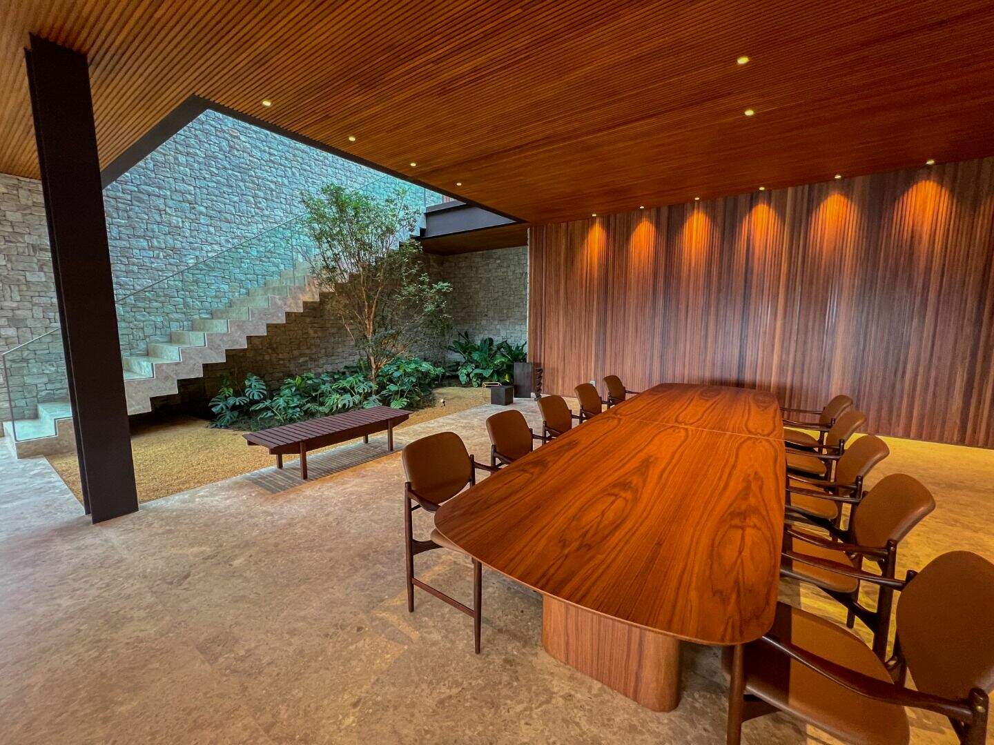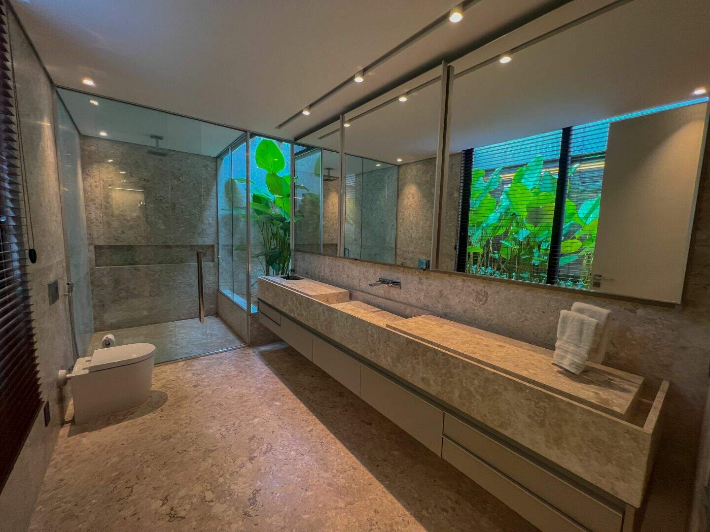 Casa no Vale dos Cristais a venda Projeto espetacular da Julia Belisário, usando muito verde, muita madeira e pedras nobres.Casa no declive com os 3 pavimentos, começando do primeiro que fica no nível da rua:1o Andar: 5 vagas de garagem paralelas, entrada imponente com lâmina de água com acabamento em pedra hijau, estar íntimo, copa noturna, 4 suítes, sendo 2 com closets e todas com acesso a uma super varanda integrada. Suíte máster para 2 ambientes, super closet e 2 banheiros finamente decorados, sendo o banheiro da senhora com banheira de imersão.2o andar:Sala com 4 ambientes, um super jardim na sala, lavabo, depósito reversível para adega, área de serviço, suíte de funcionários, cozinha/copa com ilha, tudo muito bem conectado com a varanda gourmet, churrasqueira, 2 lavabos externos, sala de massagem, banheiro, sauna, fogo de chão, hidromassagem com apoio a gás e uma super piscina para uma vista incrível.3o andar:Sala de máquinas super completa e organizada, banheiro para funcionários, academia, tatame, brinquedoteca, suíte de hospedes, 2 home offices e um banheiro social.Parte externa com paisagismo implementado e uma área de pomar.Infraestrutura:Casa com usina fotovoltaica, poço artesiano, carregador para veículo elétrico, aquecimento solar, bomba de calor para piscina, tratamento de ozônio da água, apoio a gás para a hidromassagem. Automação de som e de luz.Acabamentos: Casa com piso em mármore bege Bahia, quartos com piso em madeira natural, armários e closets da marcatto, metais de marca deka.