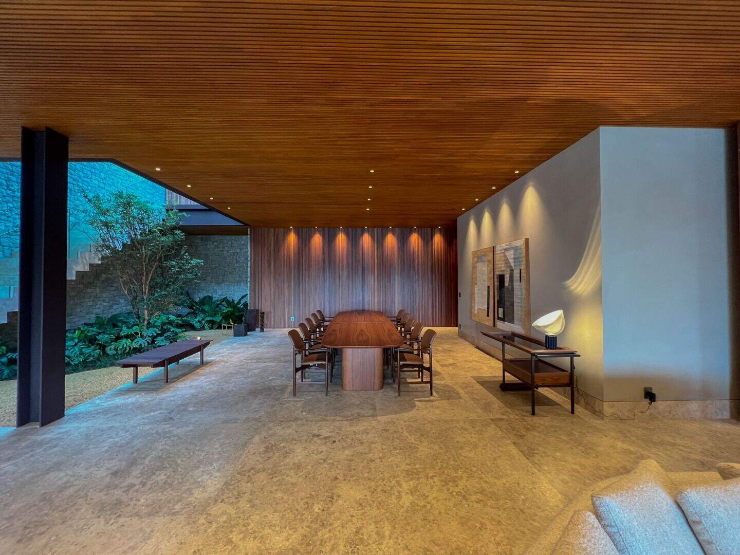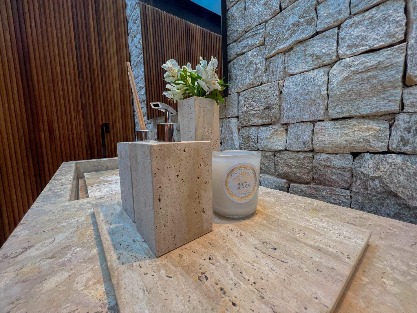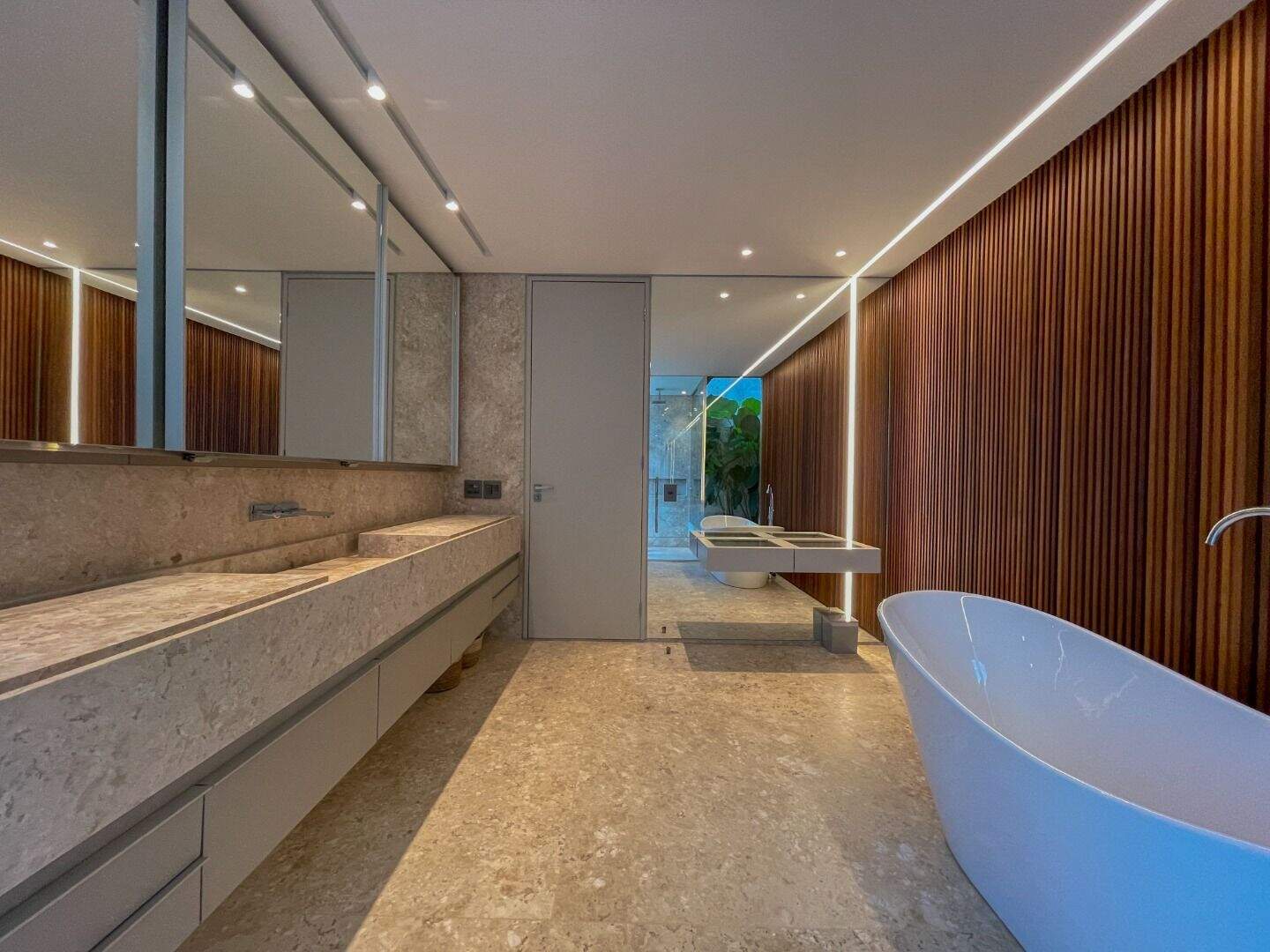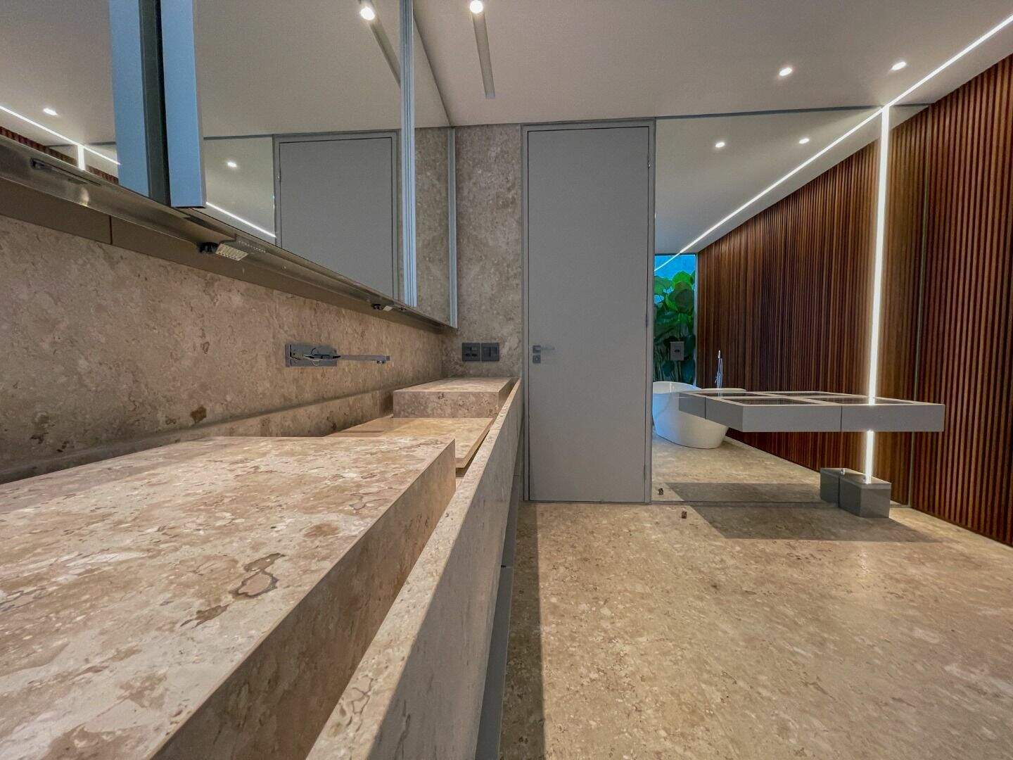Casa no Vale dos Cristais a venda Projeto espetacular da Julia Belisário, usando muito verde, muita madeira e pedras nobres.Casa no declive com os 3 pavimentos, começando do primeiro que fica no nível da rua:1o Andar: 5 vagas de garagem paralelas, entrada imponente com lâmina de água com acabamento em pedra hijau, estar íntimo, copa noturna, 4 suítes, sendo 2 com closets e todas com acesso a uma super varanda integrada. Suíte máster para 2 ambientes, super closet e 2 banheiros finamente decorados, sendo o banheiro da senhora com banheira de imersão.2o andar:Sala com 4 ambientes, um super jardim na sala, lavabo, depósito reversível para adega, área de serviço, suíte de funcionários, cozinha/copa com ilha, tudo muito bem conectado com a varanda gourmet, churrasqueira, 2 lavabos externos, sala de massagem, banheiro, sauna, fogo de chão, hidromassagem com apoio a gás e uma super piscina para uma vista incrível.3o andar:Sala de máquinas super completa e organizada, banheiro para funcionários, academia, tatame, brinquedoteca, suíte de hospedes, 2 home offices e um banheiro social.Parte externa com paisagismo implementado e uma área de pomar.Infraestrutura:Casa com usina fotovoltaica, poço artesiano, carregador para veículo elétrico, aquecimento solar, bomba de calor para piscina, tratamento de ozônio da água, apoio a gás para a hidromassagem. Automação de som e de luz.Acabamentos: Casa com piso em mármore bege Bahia, quartos com piso em madeira natural, armários e closets da marcatto, metais de marca deka.