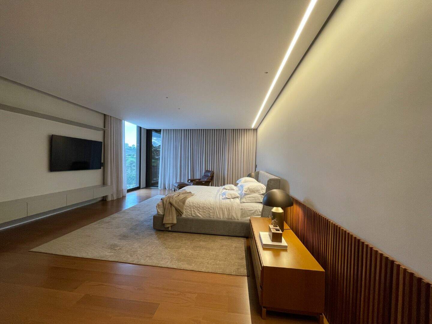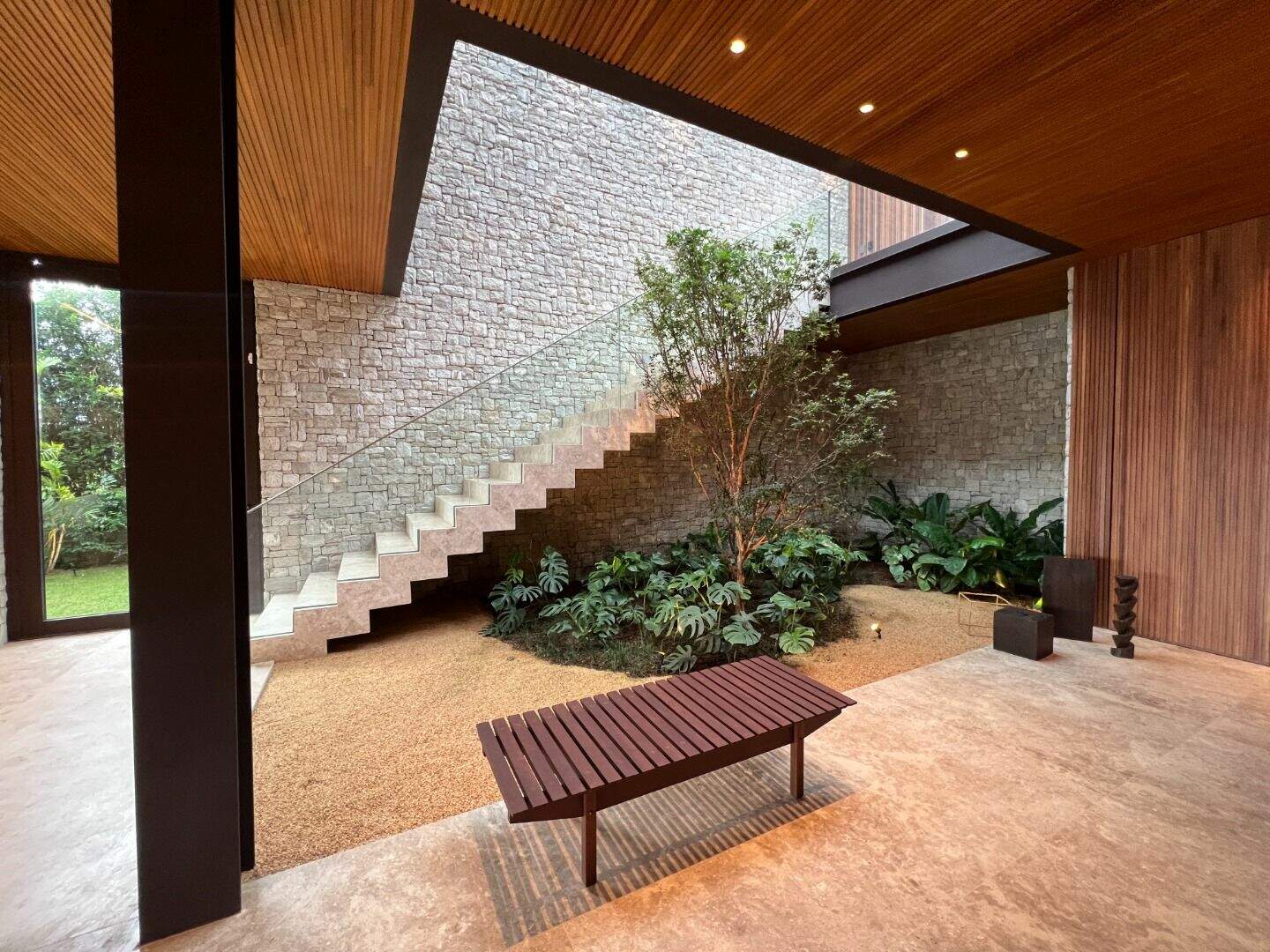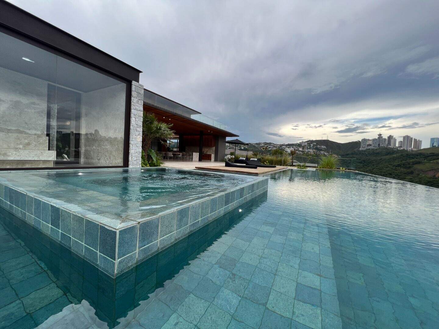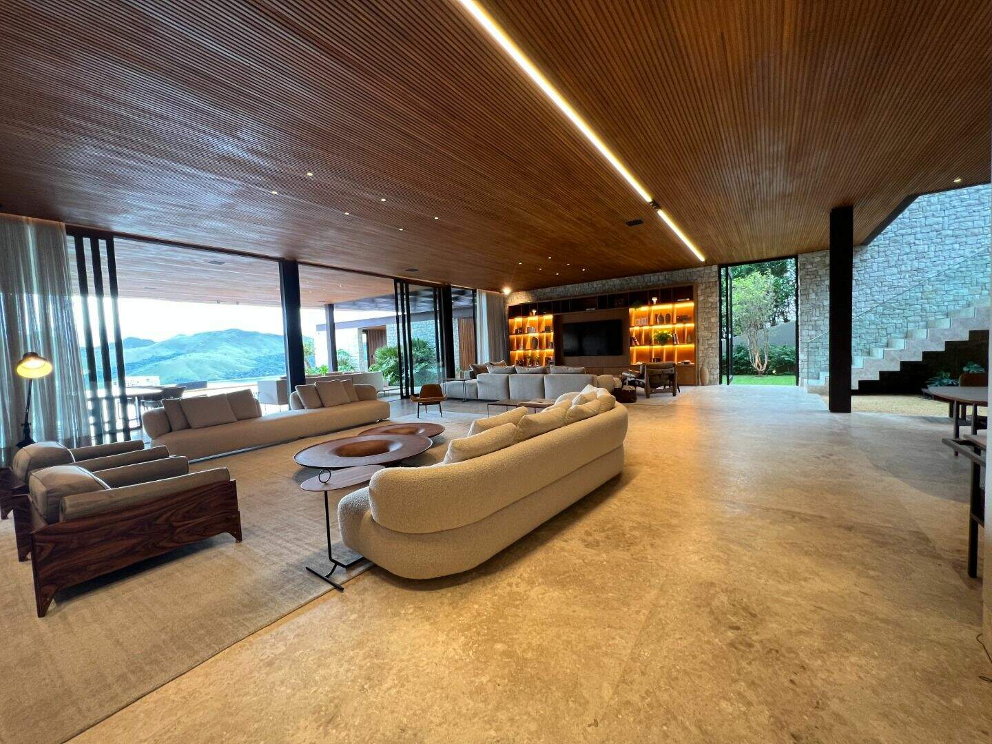 Casa no Vale dos CristaisProjeto espetacular da Julia Belisário, usando muito verde, muita madeira e pedras nobres.Casa no declive com os 3 pavimentos, começndo do primeiro que fica no nível da rua:1o Andar: 5 vagas de garagem paralelas, entrada imponente com lâmina de água com acabamento em pedra hijau, estar íntimo, copa noturna, 4 suítes, sendo 2 com closets e todas com acesso a uma super varanda integrada. Suíte máster para 2 ambientes, super closet e 2 banheiros finamente decorados, sendo o banheiro da senhora com banheira de imersão.2o andar:Sala com 4 ambientes, um super jardim na sala, lavabo, depósito reversível para adega, área de serviço, suíte de funcionários, cozinha/copa com ilha, tudo muito bem conectado com a varanda gourmet, churrasqueira, 2 lavabos externos, sala de massagem, banheiro, sauna, fogo de chão, hidromassagem com apoio a gás e uma super piscina para uma vista incrível.3o andar:Sala de máquinas super completa e organizada, banheiro para funcionários, academia, tatame, brinquedoteca, suíte de hospedes, 2 home offices e um banheiro social.Parte externa com paisagismo implementado e uma área de pomar.Infraestrutura:Casa com usina fotovoltaica, poço artesiano, carregador para veículo elétrico, aquecimento solar, bomba de calor para piscina, tratamento de ozônio da água, apoio a gás para a hidromassagem. Automação de som e de luz.Acabamentos: Casa com piso em mármore bege bahia, quartos com piso em madeira natural, armários e closets da marcatto, metais de marca deka.