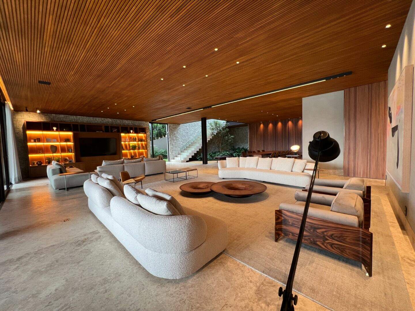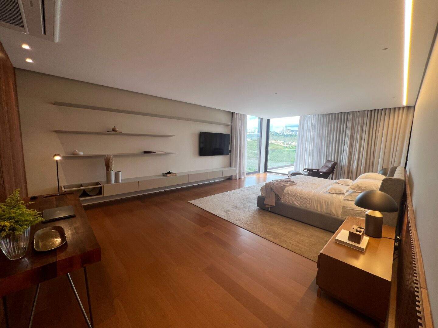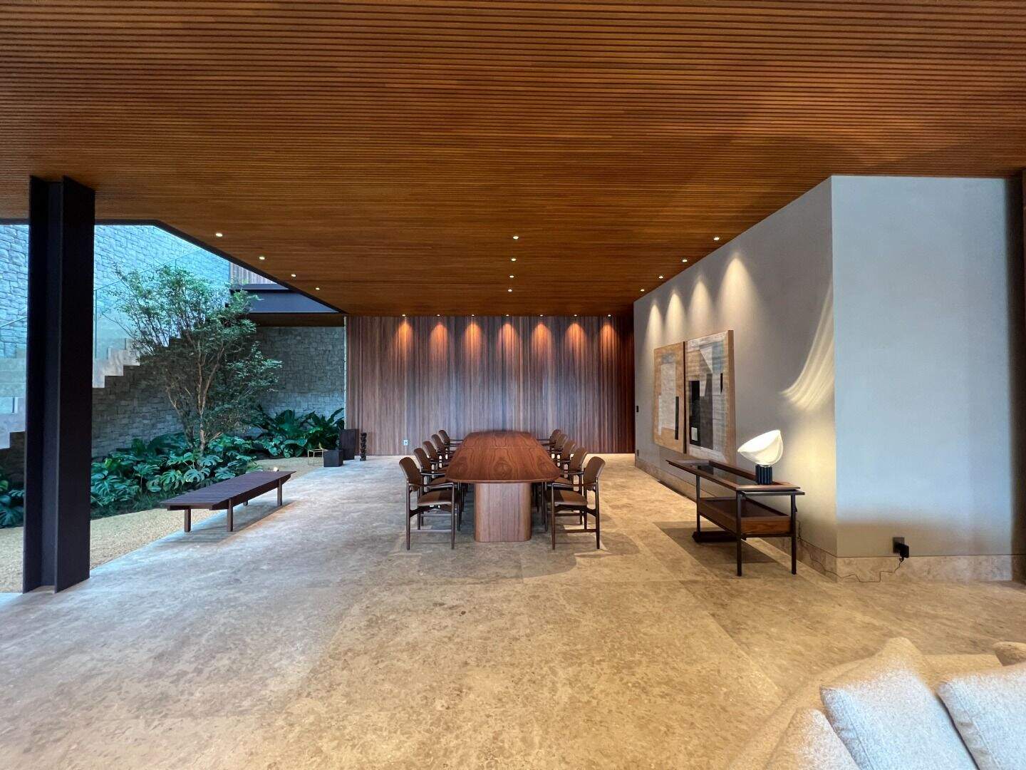 Casa no Vale dos CristaisProjeto espetacular da Julia Belisário, usando muito verde, muita madeira e pedras nobres.Casa no declive com os 3 pavimentos, começndo do primeiro que fica no nível da rua:1o Andar: 5 vagas de garagem paralelas, entrada imponente com lâmina de água com acabamento em pedra hijau, estar íntimo, copa noturna, 4 suítes, sendo 2 com closets e todas com acesso a uma super varanda integrada. Suíte máster para 2 ambientes, super closet e 2 banheiros finamente decorados, sendo o banheiro da senhora com banheira de imersão.2o andar:Sala com 4 ambientes, um super jardim na sala, lavabo, depósito reversível para adega, área de serviço, suíte de funcionários, cozinha/copa com ilha, tudo muito bem conectado com a varanda gourmet, churrasqueira, 2 lavabos externos, sala de massagem, banheiro, sauna, fogo de chão, hidromassagem com apoio a gás e uma super piscina para uma vista incrível.3o andar:Sala de máquinas super completa e organizada, banheiro para funcionários, academia, tatame, brinquedoteca, suíte de hospedes, 2 home offices e um banheiro social.Parte externa com paisagismo implementado e uma área de pomar.Infraestrutura:Casa com usina fotovoltaica, poço artesiano, carregador para veículo elétrico, aquecimento solar, bomba de calor para piscina, tratamento de ozônio da água, apoio a gás para a hidromassagem. Automação de som e de luz.Acabamentos: Casa com piso em mármore bege bahia, quartos com piso em madeira natural, armários e closets da marcatto, metais de marca deka.
