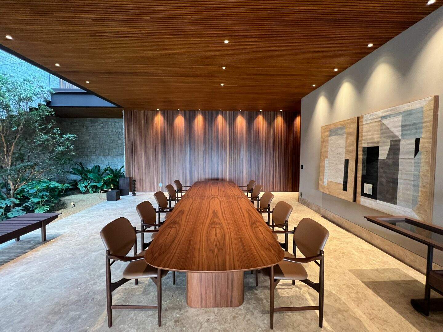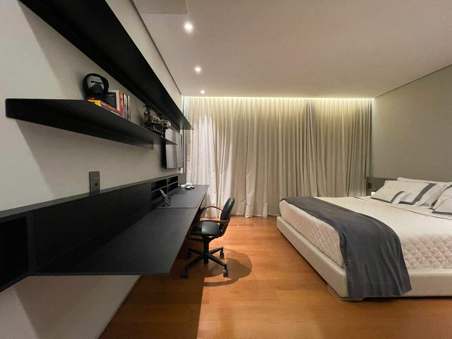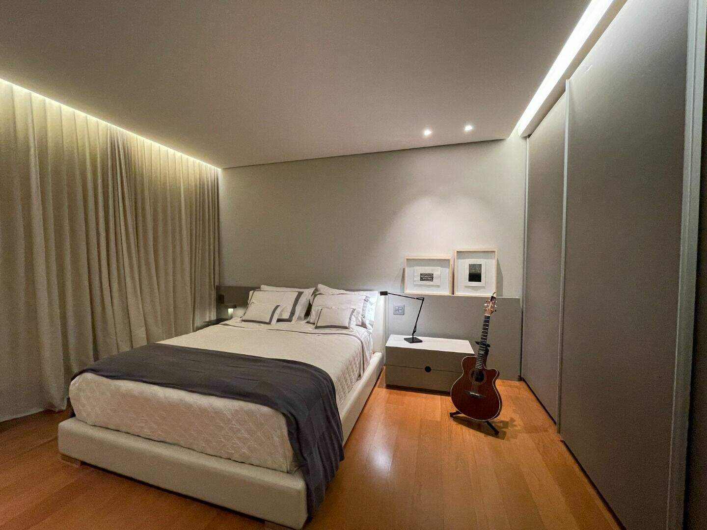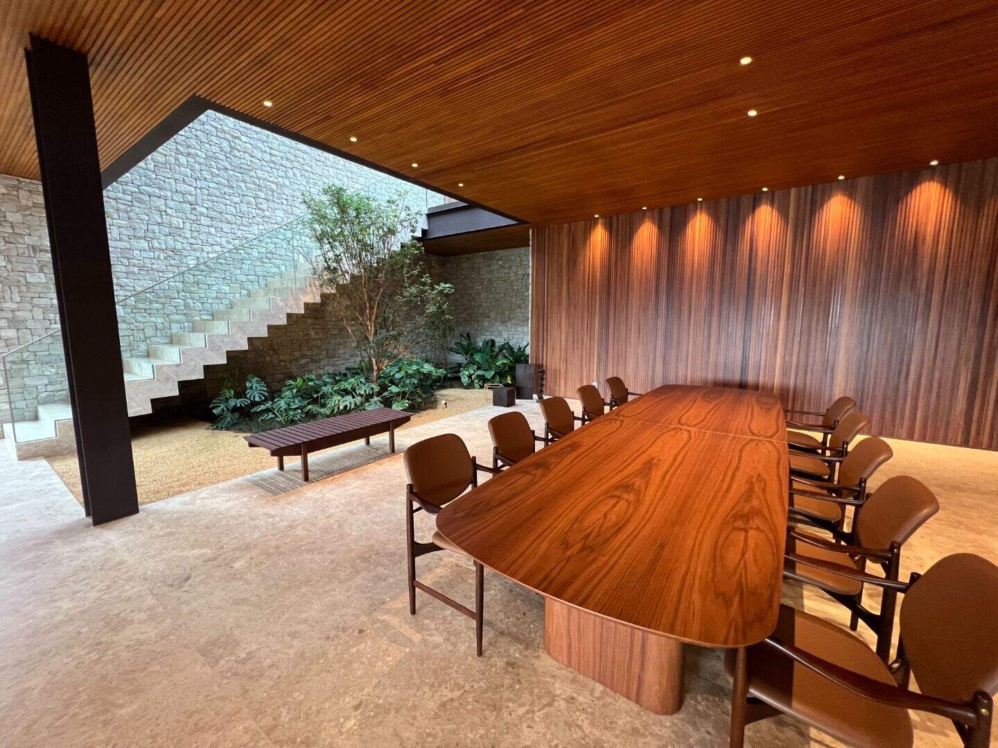 Casa no Vale dos CristaisProjeto espetacular da Julia Belisário, usando muito verde, muita madeira e pedras nobres.Casa no declive com os 3 pavimentos, começndo do primeiro que fica no nível da rua:1o Andar: 5 vagas de garagem paralelas, entrada imponente com lâmina de água com acabamento em pedra hijau, estar íntimo, copa noturna, 4 suítes, sendo 2 com closets e todas com acesso a uma super varanda integrada. Suíte máster para 2 ambientes, super closet e 2 banheiros finamente decorados, sendo o banheiro da senhora com banheira de imersão.2o andar:Sala com 4 ambientes, um super jardim na sala, lavabo, depósito reversível para adega, área de serviço, suíte de funcionários, cozinha/copa com ilha, tudo muito bem conectado com a varanda gourmet, churrasqueira, 2 lavabos externos, sala de massagem, banheiro, sauna, fogo de chão, hidromassagem com apoio a gás e uma super piscina para uma vista incrível.3o andar:Sala de máquinas super completa e organizada, banheiro para funcionários, academia, tatame, brinquedoteca, suíte de hospedes, 2 home offices e um banheiro social.Parte externa com paisagismo implementado e uma área de pomar.Infraestrutura:Casa com usina fotovoltaica, poço artesiano, carregador para veículo elétrico, aquecimento solar, bomba de calor para piscina, tratamento de ozônio da água, apoio a gás para a hidromassagem. Automação de som e de luz.Acabamentos: Casa com piso em mármore bege bahia, quartos com piso em madeira natural, armários e closets da marcatto, metais de marca deka.