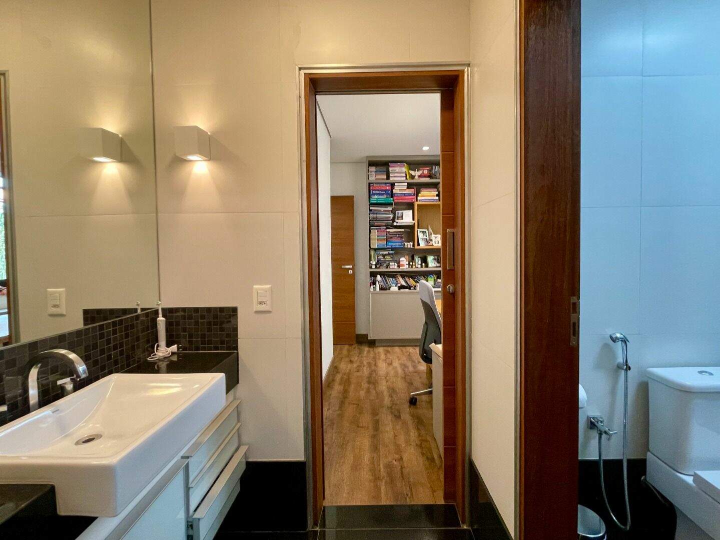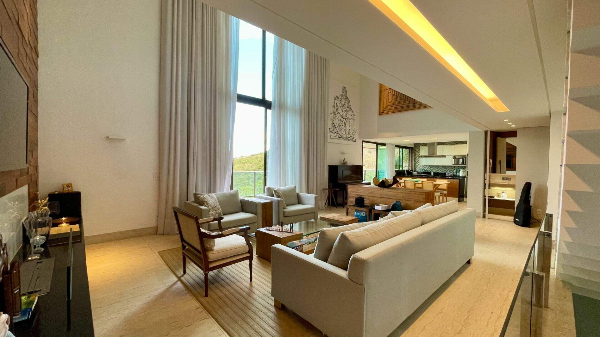 Casa moderna à venda no Condomínio Vila Alpina, Nova Lima MGCom 409,38 m² de área construída em um terreno de 1.310 m², esta residência oferece design moderno, integração total entre os ambientes e uma das melhores vistas do condomínio.No primeiro pavimento, o living com pé-direito duplo integra sala de estar e jantar, conectando-se a uma ampla varanda que valoriza a iluminação natural. A cozinha estilo aberta é equipada com armários planejados e se une harmoniosamente ao espaço social. Conta ainda com lavabo, área de serviço independente e dependência completa para funcionários.No segundo piso, estão três quartos, incluindo uma suíte master com hidro e vista espetacular para as montanhas, closet e rouparia.O terceiro pavimento abriga uma sala de TV aconchegante, além de dois quartos (sendo um deles suíte). A ampla sacada permite contemplar o pôr do sol sobre a paisagem e dá acesso a um charmoso pomar.Privacidade e conforto são destaques desta casa situada em um ponto extremamente tranquilo do condomínio.Entre as comodidades, estão ar-condicionado, armários em todos os ambientes, aquecimento solar, gás canalizado, jardim, portão eletrônico, interfone e box de despejo.A residência conta ainda com quatro vagas de garagem e sol da manhã, elevando a sensação de bem-estar e valorizando o estilo de vida em um dos endereços mais desejados de Nova Lima.