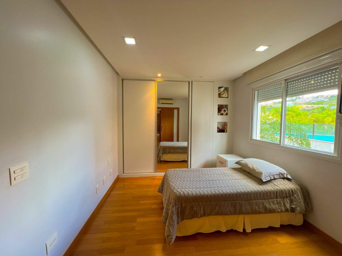 Casa com 580 m2 com pomar e campo de futebol.Faixada moderna com pórtico imponente.Projeto do arquiteto Tulio Lopes1o Nível: Sala para 3 ambientes, hall de entrada com pé direito duplo, lavabo, 1 suíte de hóspedes. Cozinha montada com armários, integrada com área gourmet e despensaÁrea externa com espaço de convivência, churrasqueira, depósito reversível em sauna, 2 banheiros de apoio, piscina aquecida, iluminada e com cascata, um campo de futebol e um belo pomar com horta.2o Piso: Estar íntimo e 4 quartos sendo 2 suítes e 2 semissuítes, todos com ar condicionado. Suíte Máster com varanda, closet e hidromassagem.Lote com 1060 m2, garagem coberta para 10 carros, casa com excelente padrão de acabamento, vista definitiva, área de preservação ao fundo e poço artesiano. Baixo custo de manutenção. Em rua privilegiadamente sossegada e próxima a trilhas do condomínio. Vista frontal para o vale.Piso da área social em mármore e área íntima em madeira.Obs.: O valor do imóvel é estipulado pelo proprietário, sempre confirme os valores com nossos consultores.