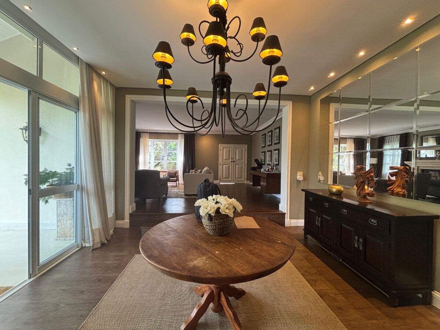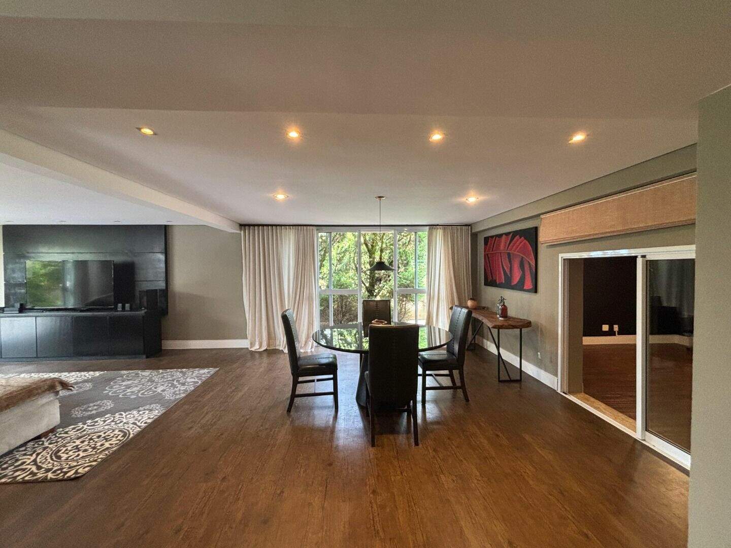 Casa muito bem localizada no condomínio, sala para 2 ambientes grandes com lareira, lavabo bem decorado, ante sala decorada varanda.Cozinha conjunta com copa, coifa, fogão e torre de fornos. Area de serviço, quarto de funcionário com banheiroSubindo 3 degraus, temos acesso a quatro quartos sendo que a suíte máster tem banheira e amplo closet. mais 2 semi suítes e mais um quarto . Subindo uma escada, encontra-se o escritorioNo nível abaixo, temos área gourmet com cozinha completa, sala de tv, quarto multiuso grande, sala de jantar, jardim, espaço com hidromassagem e sauna. Lavabo.Infraestrutura: ar condicionado, aquecimento