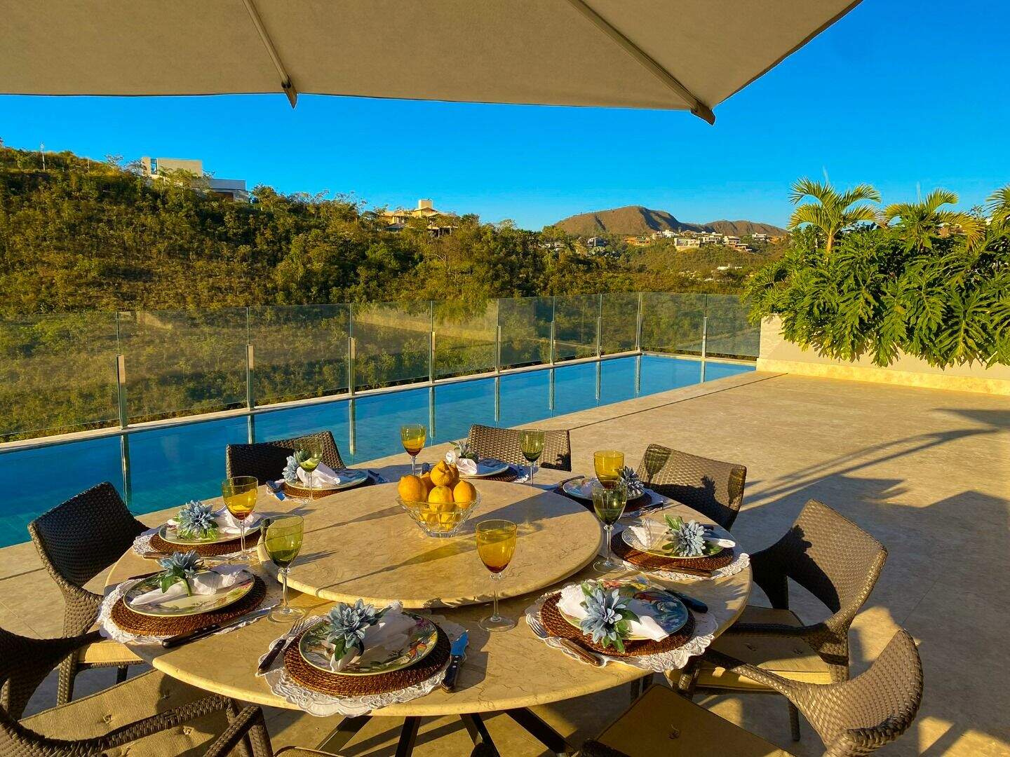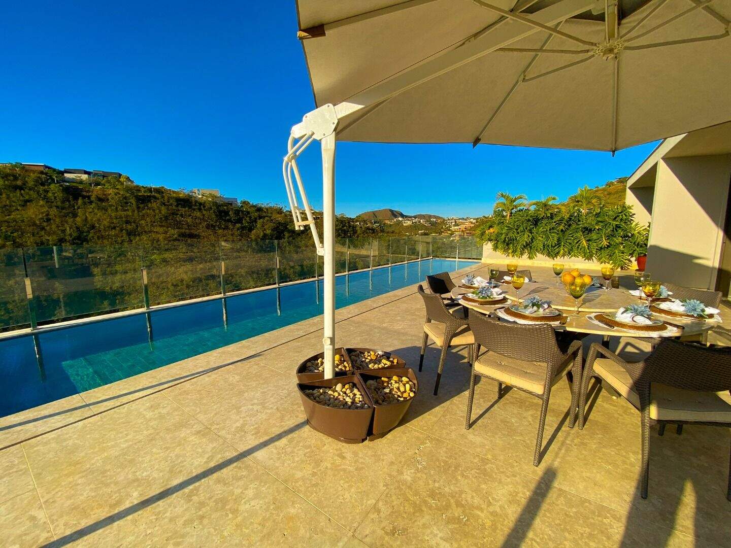 Casa no Condomínio Nascentes - Vale dos CristaisProjeto do renomado escritório Anastasia ArquitetosA casa é completamente autônoma, gera sua própria energia e sua própria água através de usina fotovoltaica e poço artesiano, proporcionando mais economia e segurança.Casa em um lote de 1510 m2 com uma vista surreal para o Vila da Serra, ela tem três andares da seguinte forma:Primeiro andar: Nível da rua temos sala para 3 ambientes, área gourmet integrada com churrasqueira, 2 suítes (máster e de visitas ficam nesse nível) ambas com closet e a suíte máster com duchas duplas e cubas duplas. Piscina voltada para o melhor vista da casa. 2 lavabos finamente decorados, um para dar apoio a área molhada. Cozinha/copa toda montada, com armários e eletros de primeira linha. Área de serviço ampla com bancadas em granito são gabriel.Segundo andar: Temos mais 3 suítes, sendo 1 delas com closet, garagem para 4 carros livres, mas cabem 5 carros. Adega, box de despejo, despensa e suíte para funcionários.Terceiro andar: Uma varanda gourmet, um banheiro para apoio, uma casa de máquinas e acesso para área verde onde tem pomar e horta muito bem feito e cuidado.Casa tem toda parte de piso social em mármore bege bahia e piso da área íntima em madeira laminada. Preparação para receber elevador com fosso já pronto. Irrigação automatizada, sistema de gerenciamento de câmeras CFTV, Aquecimento solar, Usina fotovoltaica, poço artesiano. Sistema de automação de som e alarme. Casa super completa.