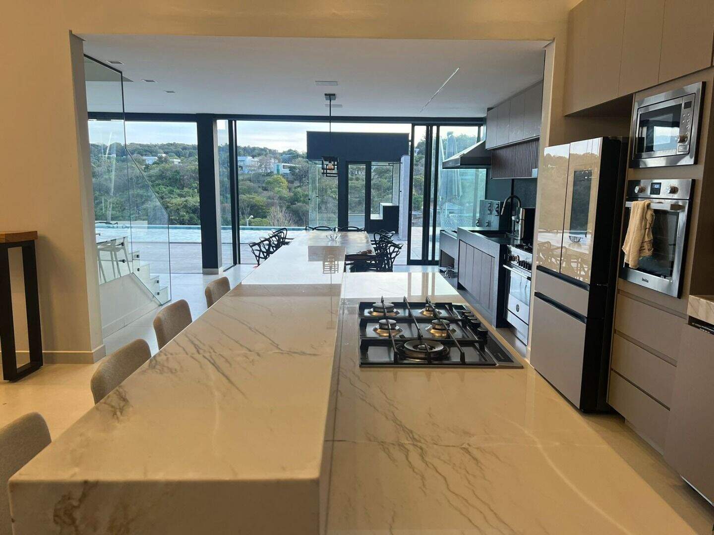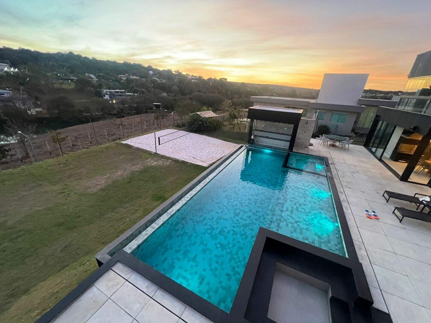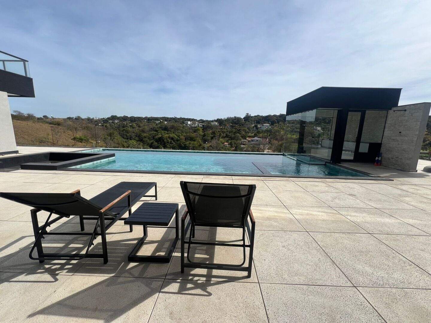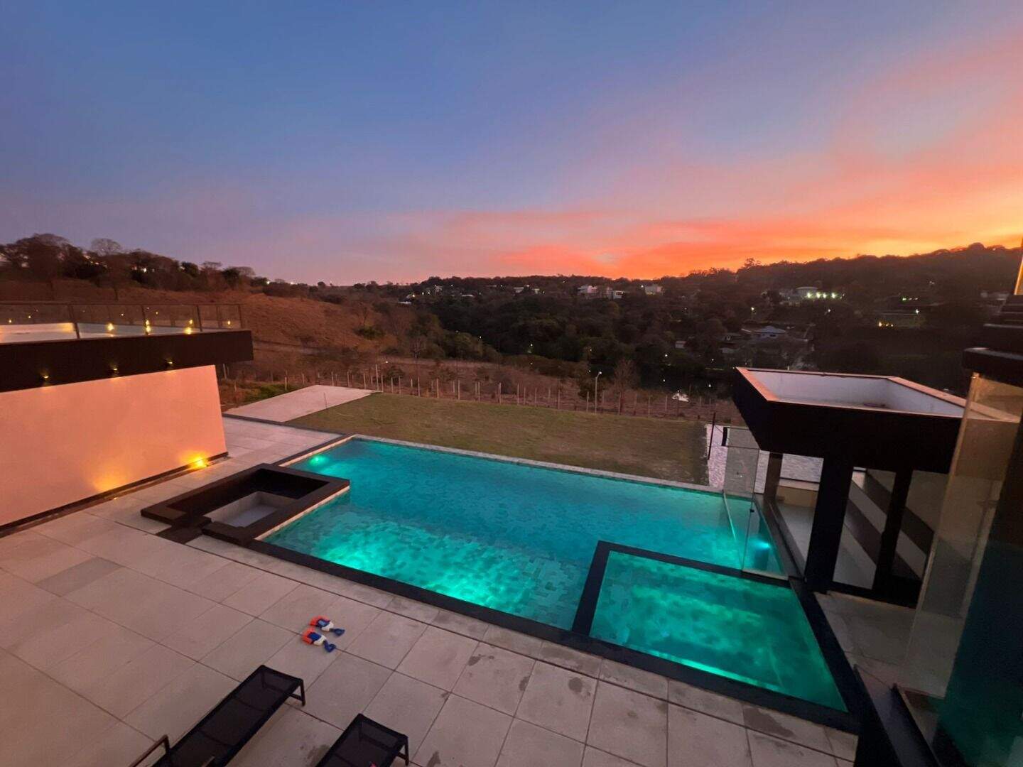 Casa de luxo no Condomínio Residencial Vila Arcádia, Lagoa Santa MGSão 700 metros quadrados de área construída em um terreno de 2000 metros quadrados. Casa nova e com área de lazer diferenciada.A casa fica em um terreno em frente à lagoa que faz a divisa entre o condomínio Vila Arcádia e o condomínio Estância das Amendoeiras, proporcionando uma vista belíssima. São 2 níveis dispostos da seguinte forma: Nível TérreoFachada moderna, garagem coberta para 2 carros grandes e descoberta para mais 4 veículos. Sala para 2 ambientes com pé direito duplo, sala de cinema equipada, lavabo, cozinha completa em armários e com ilha integrada ao espaço gourmet com churrasqueira, bar, despensa, ampla área de serviço, dois vestiários.5 suítes, sendo a master com closet, hidromassagem e vista para área verde.Piscina com borda infinita e hidromassagem, sauna, fogo de chão, quadra de beach tennis.Nível Superior:Rooftop com salão de festas e cozinha de apoio para receber aproximadamente 200 pessoas, lavabo e academia. Vista panorâmica.Acabamentos:Acabamentos em mármore branco e esquadrias gold. Bar revestido em pedra ônixPisos em porcelanato e vinílico.Infraestrutura:Todas as suítes com ar condicionado. Obs: Sempre consulte os valores com nossos especialistas, os valores podem se alterar sem prévio aviso.