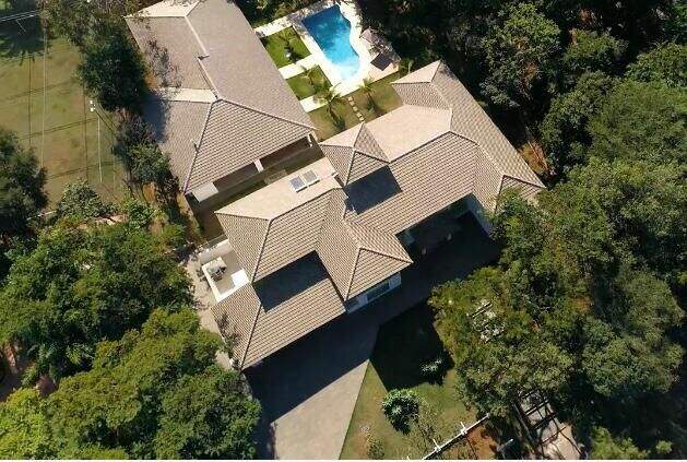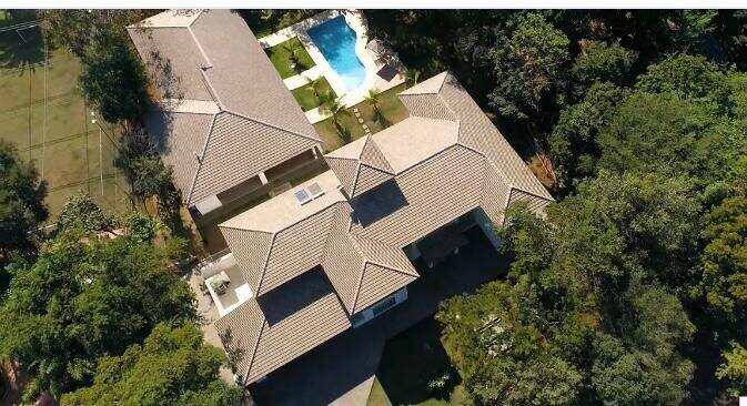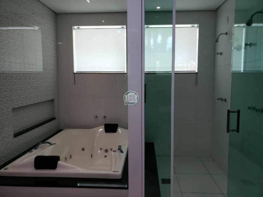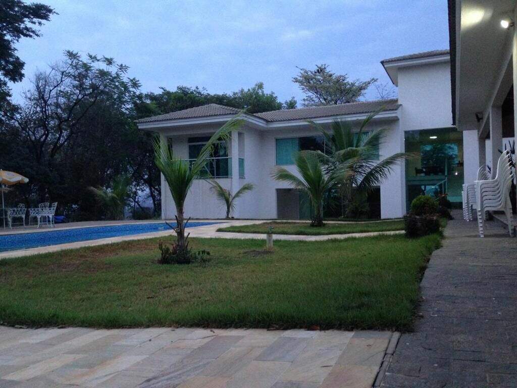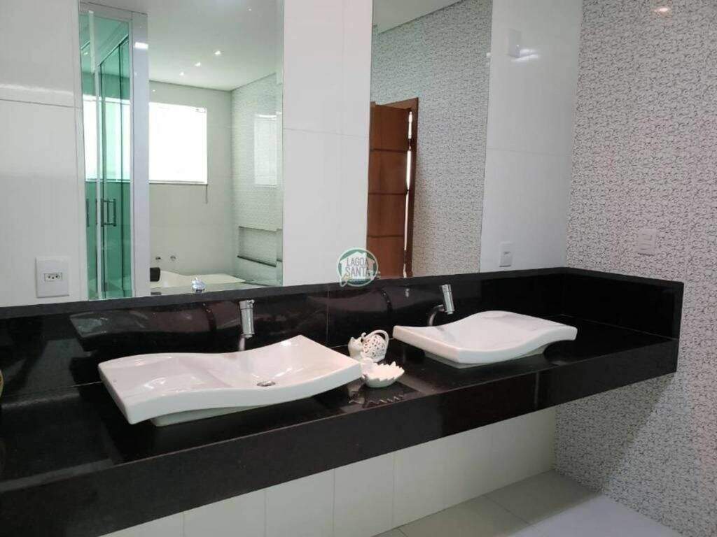 Casa no condomínio Estâncias das Amendoeiras, Lagoa Santa.Localizada em um dos melhores condomínios da Cidade e de fácil acesso para Belo Horizonte.São 1.100m² de área construída em um terreno de 5000m², com apenas 2 anos de construção. A casa fica em um terreno em aclive.São 2 níveis dispostos da seguinte forma:Primeiro nível:03 salas integradas, jantar, estar e tv , varanda ampla, cozinha, área de serviço, despensa, suíte para funcionário, lavabo e biblioteca.Área de lazer com amplo espaço gourmet com churrasqueira e forno com fogão à lenha; sala de jogos e tv; salão de dança, academia, lavabo, 2 banhos, sauna, piscina, pomar, campo de futebol e jardim. Segundo nível:4 suítes com closet e sacada, sendo a máster com hidromassagem, cuba e banho duplo. 1 home theater.Acabamentos:Piso da sala,quartos e banheiros em porcelanato, cozinha em mármore, bancadas em granito, biblioteca com armários e escrivaninha, jardim todo irrigado.Infraestrutura:Quadra poliesportiva,piscina, sauna, campo de futebol, academia, quintal. Casa do caseiro com 01 suíte e lavanderia independenteObs: Sempre consulte os valores com nossos especialistas, os valores podem se alterar sem prévio aviso.