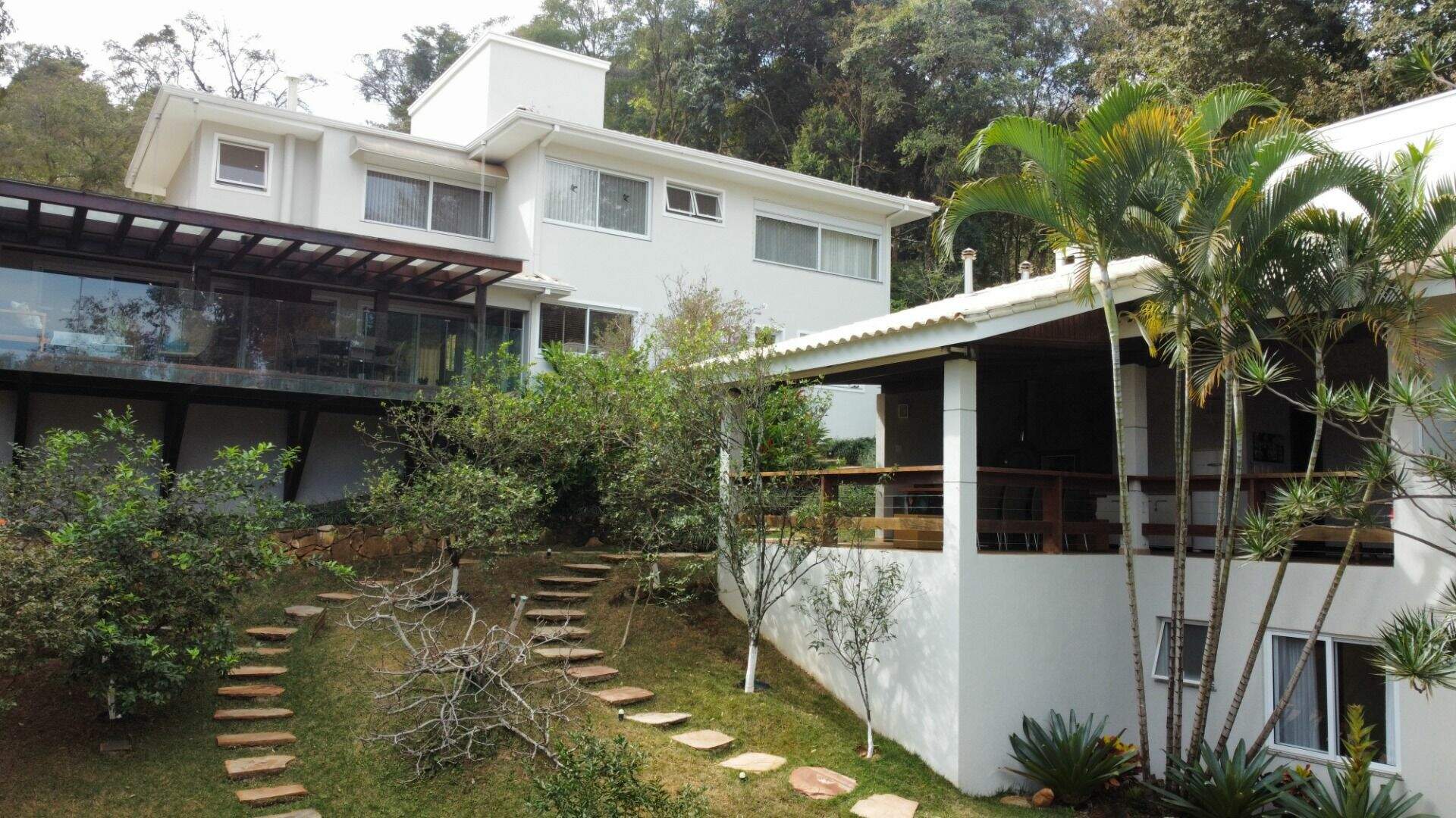 Casa no condomínio Retiro do Chalé- Brumadinho Lote com 4.981m² ( 30 metros de frente )3.900 m² Área de PreservaçãoConstrução 480m².Excelente projeto, planejado para moradia permanente, com amplo recuo frontal de fácil acesso á garagem coberta e estacionamento para vários carros.Laterais com jardins e ótimo projeto paisagístico.Fundos com uma quadra poliesportiva, amplos jardins e 25 variedades de árvores frutíferas, ao longo de todo o gramado.480m² de área construída em duas casas :1 Casa350m²Sala ampla para dois ambientes com lareira mais lavabo.Cozinha montada com acesso sala/varanda mais área de serviço.Deck com espaçosa varanda, lareira externa e vista para as montanhas.3 Suítes, sendo uma Master com ClosetSala de TV mais escritório.Despensa e quarto para guardar equipamentos de manutenção.Pavimentos em granito e tábua corrida.2 Casa130m²Excelente espaço gourmet com churrasqueira e forno.Sauna a vapor elétrica.Jacuzzi para 7 pessoas com aquecimento a gás.3 quartos, sendo 1 Suíte com varanda junto com espaço externo.1 banheiro social.Duas casas com sistema Solar, aquecimento de água em todos os banheiros e cozinha.Iluminação planejada em todos os espaços com lâmpadas de led.Central de gás, para fogões e jacuzzi.