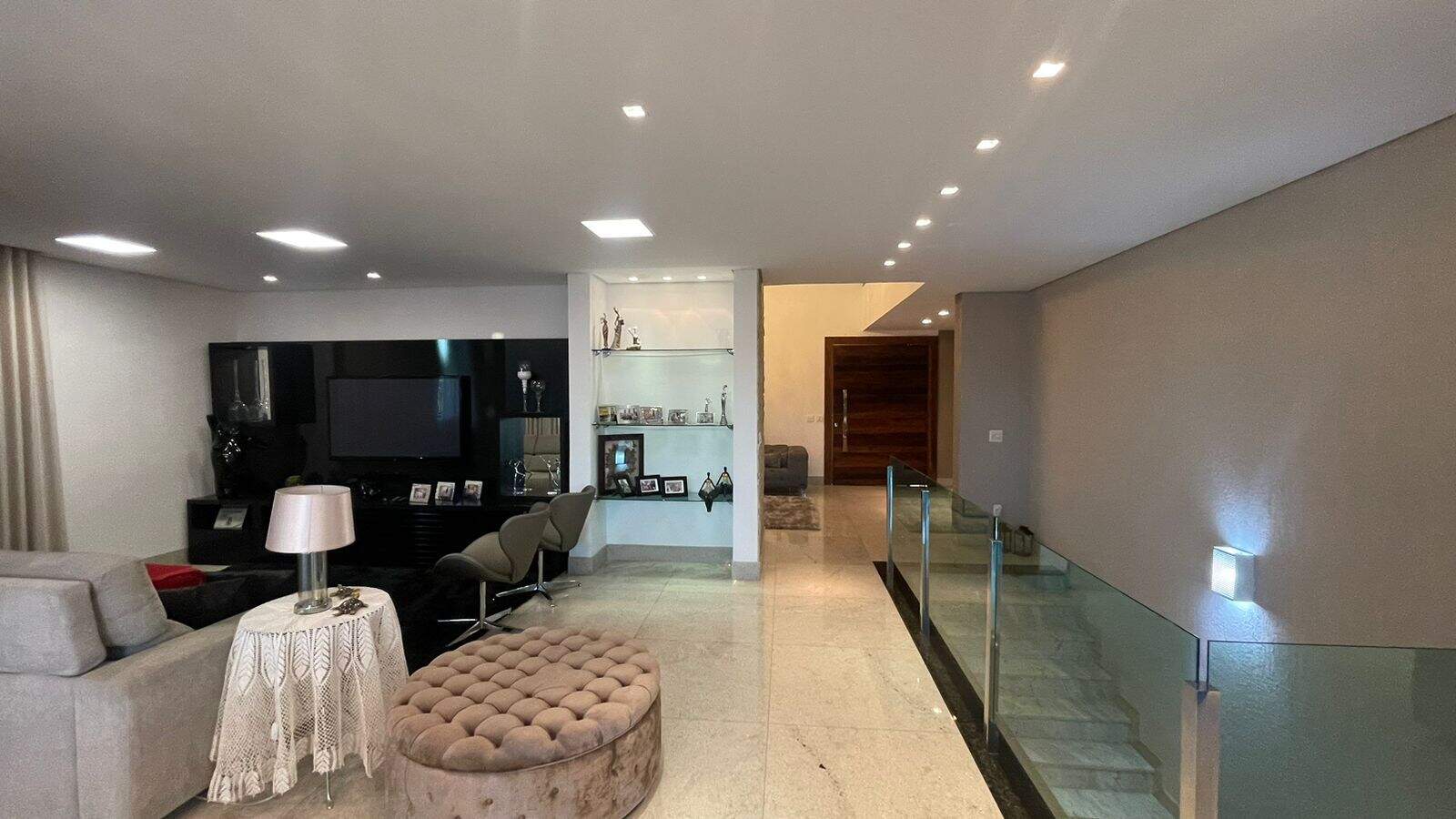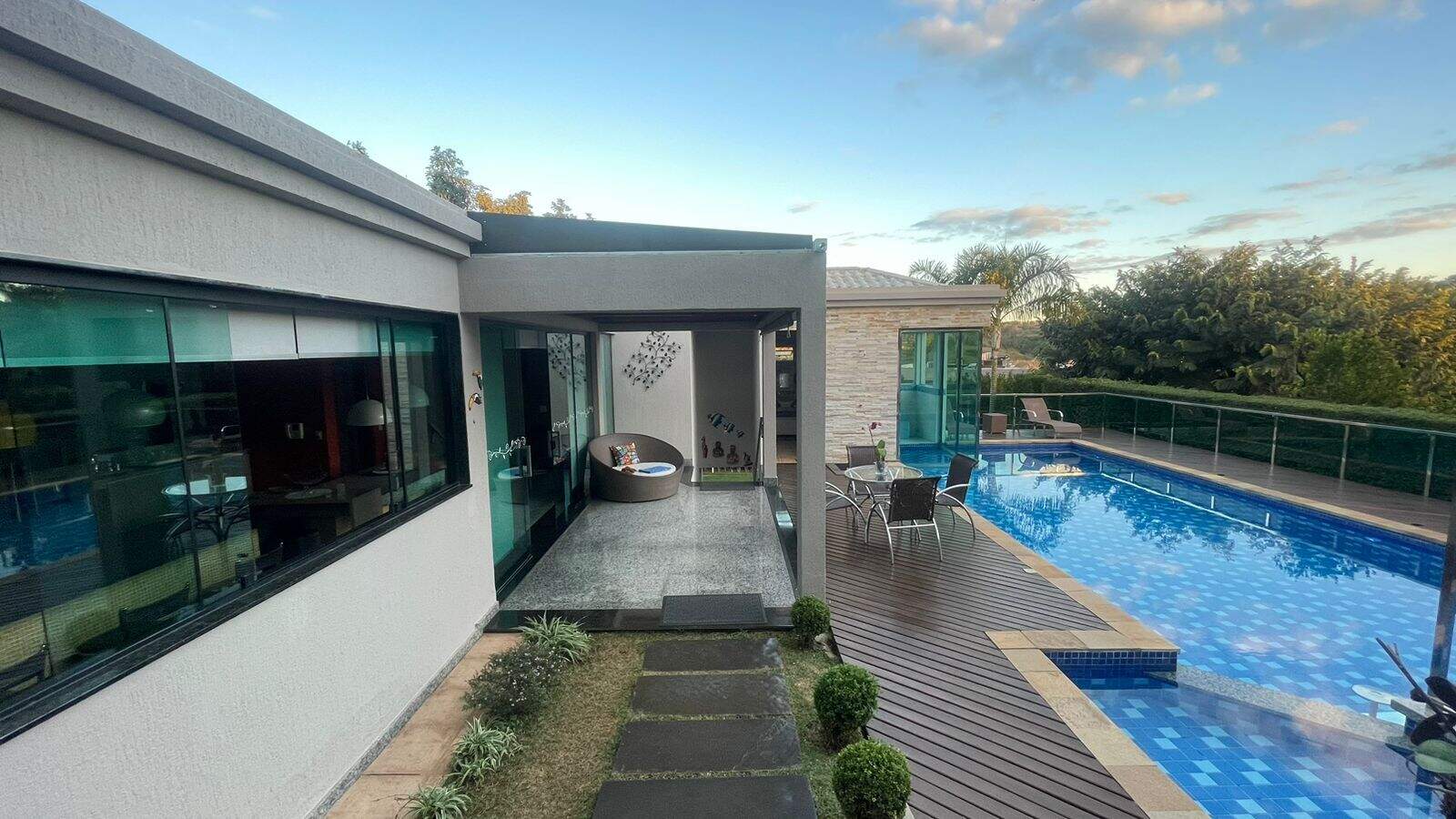 Essa casa no Condomínio Bounganville- Lagoa Santa.É realmente impressionante, com seus 03 pavimentos e uma variedade de comodidades que oferecem conforto e estilo de vida luxuoso.No 1 pavimento, abaixo do nível da rua, a garagem para 8 carros com piso em granito proporciona espaço amplo e elegante para veículos. As 03 suítes, a lavanderia e a área gourmet completa, com piscina com bar molhado e sauna molhada, são ideais para entretenimento e momentos de lazer. A presença de uma academia e sala de estudo oferece opções para atividades físicas e intelectuais.O terreno em declive é bem aproveitado, criando uma atmosfera única e proporcionando vistas encantadoras.No 2 pavimento, no nível da rua, as 03 salas amplas, o lavabo, a sala de estar com lareira, a sala de televisão e a sala de jantar com varanda integrada com a cozinha proporcionam espaços generosos para convívio e relaxamento. A presença de um banheiro e uma dispensa adicionais é conveniente para os moradores e seus convidados.No 3 pavimento, os 04 quartos, incluindo uma suíte master com closet, duas semissuítes com closet e varanda, e um escritório reversível, garantem privacidade e conforto para a família. Com uma área construída de 635m² e um lote de 1.000m², essa casa oferece bastante espaço e conforto. A instalação de aquecimento solar e esquadrias em alumínio demonstra preocupação com a eficiência energética e a qualidade dos materiais.No geral, essa casa é um verdadeiro refúgio, oferecendo uma combinação de luxo, conforto e funcionalidade em um ambiente deslumbrante.