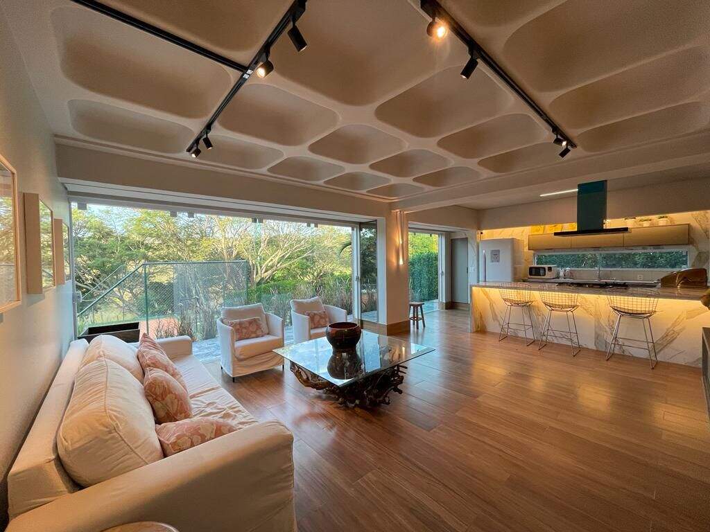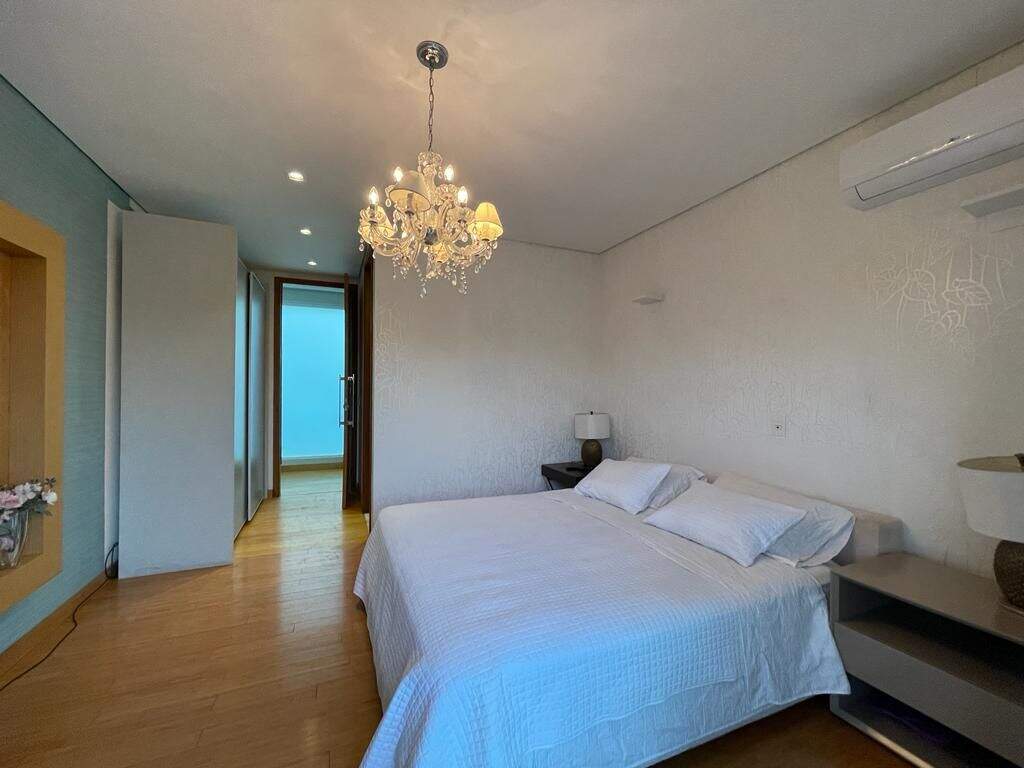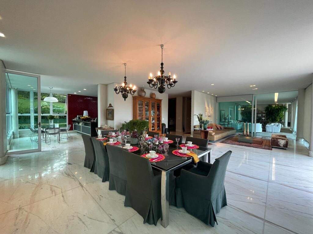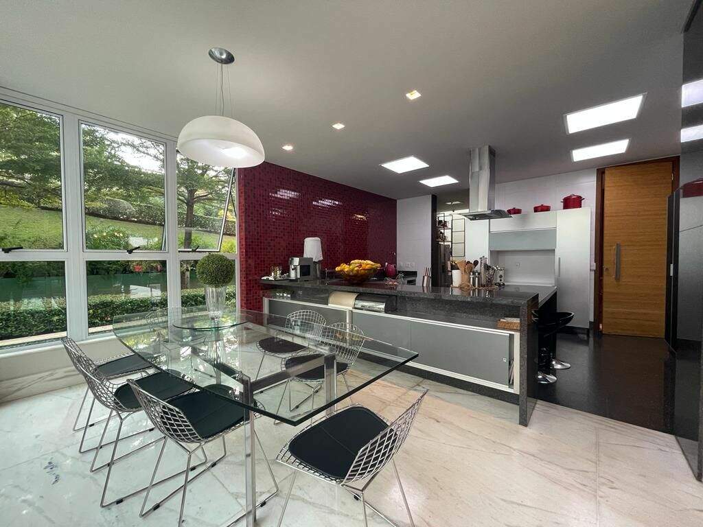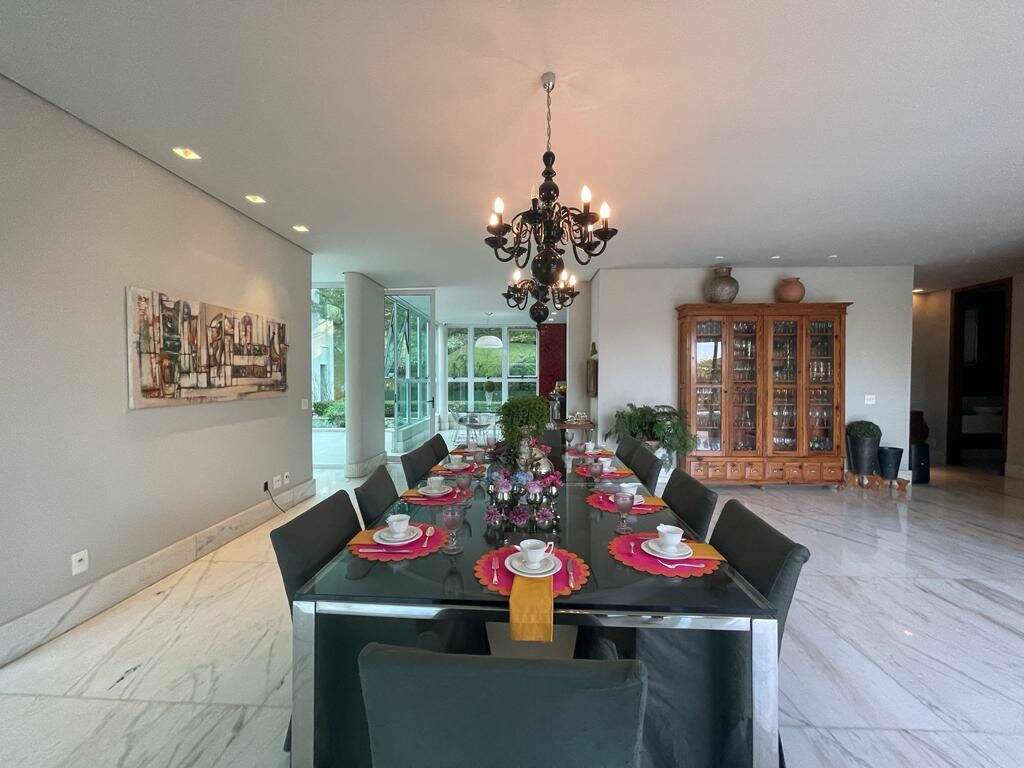 Casa no condomínio Estâncias das Amendoeiras, Lagoa Santa.Localizada em um dos melhores condomínios da Cidade e de fácil acesso para Belo Horizonte.São 1500mt2 de área construída em um terreno de 5000mts2, casa com apenas 10 anos de construção.A casa fica em um terreno em declive que proporciona uma vista para a lagoa, talvez a melhor vista do condominio.São 3 níveis dispostos da seguinte forma:Primeiro nível superior: ( Social )5 salas conectadas ( jantar, livin, home cinema, sala de tv, sala de jogos,) espaço goumert completo, conectada com uma área externa e uma piscina com vista incrível. Cozinha, copa, louceiro, despensa, área de serviço, suíte para funcionários, mais duas suítes ( 1 hospede e 1 home ) lagosde carpas e garagem para 4 carros cobertas e várias descobertas.Segundo nível ( Nível superior, área íntima )4 suítes todas com closet, sendo a master bastante ampla com dois closets e dois banheiros com hidromassagem.Terceiro nível ( Abaixo )Quadra de tênis oficial em saibro, espaço goumert amplo, com churrasqueira, torre de eletros, sala com academia montada e 2 semi suites.Acabamentos:Piso da sala mármore veiado, bancadas em granito, quartos piso em bambu,metais da marca Deka e lavabo em madripedra.Infraestrutura:Aquecimento solar, piscina aquecida,quadra de tênis, filtro fusati e sauna.