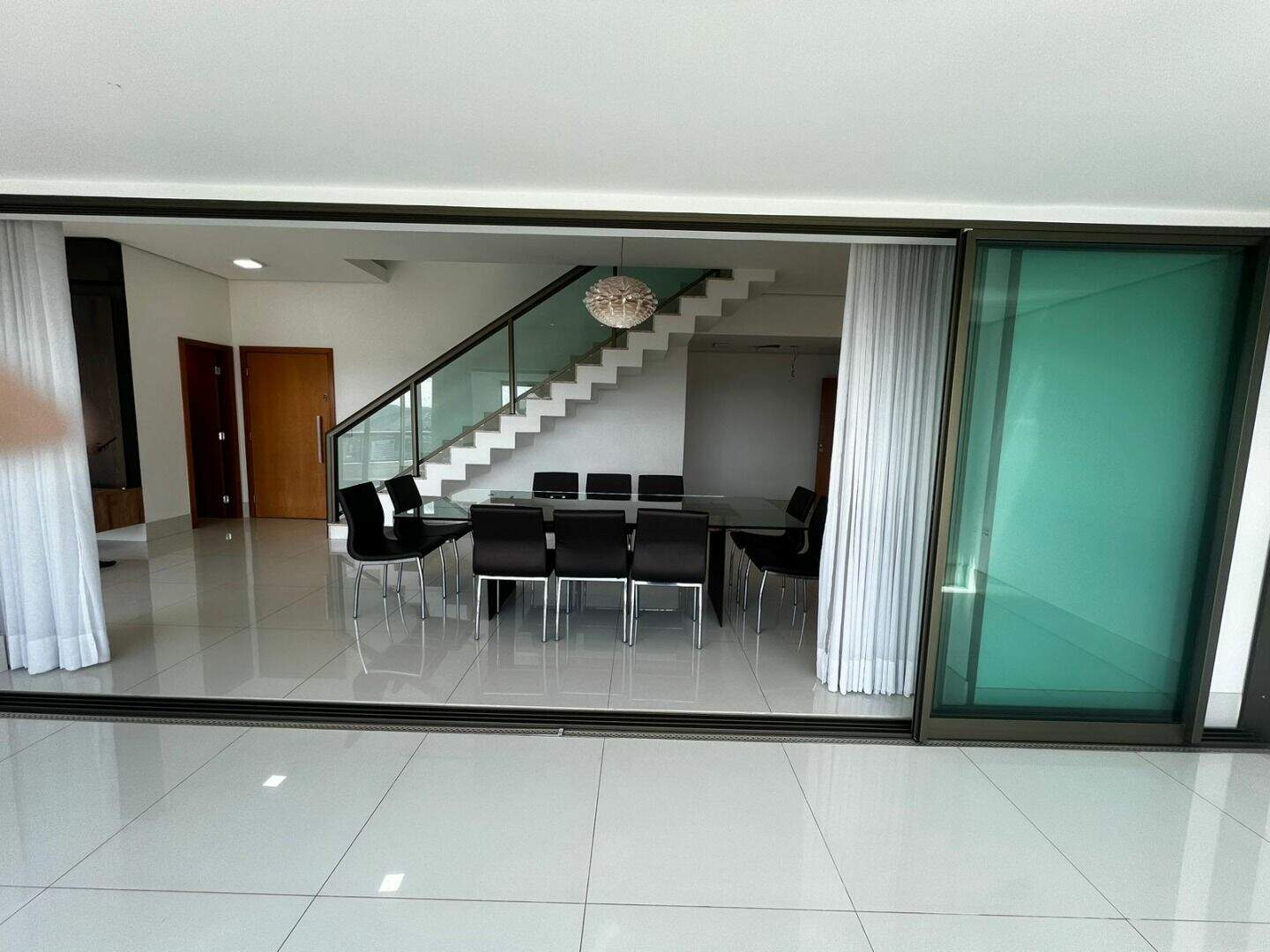 Linda cobertura com 412 metros quadrados, com cinco quartos, sendo três suítes e duas semi-suítes, com a seguinte distribuição:1 Pavimento:Quatro dormitórios, sendo duas suítes e duas semissuítes, com piso laminado nos quartos e porcelanato nos banhos, com bancada em mármore;Suíte master com closet e banho com banheira de hidromassagem; Sala para três ambientes integrada a duas amplas varandas, com vista deslumbrante; piso em porcelanato;Escada em mármore;Lavabo com bancada em mármore;Cozinha ampla em granito preto absoluto;Área de serviço independente;Suíte para funcionário (DCE Dependência Completa de Empregada);2 Pavimento:Uma suíte com linda vista. Sala para home theater;Terraço gourmet coberto e living descoberto;Ampla área aberta, deck com piscina aquecida e vista panôramica.Sauna, ducha, vestiário e espaço para descanso.Cinco vagas de garagem, sendo três livres;Box de despejo.Condomínio com apenas duas torres e cinquenta e quatro unidades no total.Prédio recuado, portaria 24 horas, áreas livres com paisagismo, duas torres com hall social independente, área de lazer completa com salão de festas, piscina aquecida, quadra de tênis, playground, sauna, salão de jogos, espaço fitnees, espaço kids, spa com área de descanso e pet play.Obs: Sempre consulte os valores com nossos especialistas, os valores podem se alterar sem prévio aviso.